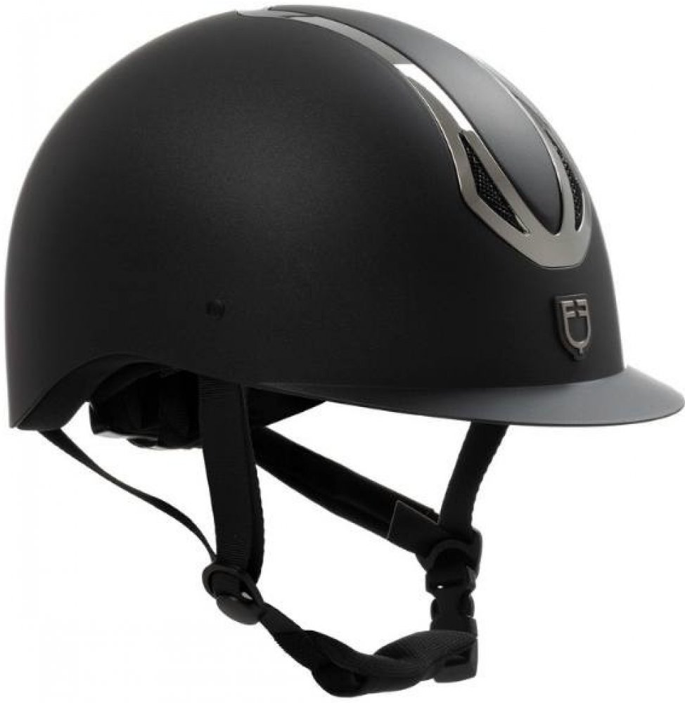 Unisex jezdecká přilba od výrobce Equestro z vysoce kvalitních materiálů, které zajišťují mimořádnou odolnost, a přitom lehkost a pohodlí. Vnější skořepina s předními ventilačními otvory poskytuje vynikající cirkulaci vzduchu. Pohodlné a prodyšné vnitřní polstrování je odnímatelné pro snadnou údržbu. Měkký podbradní řemínek s podšívkou je hypoalergenní a antibakteriální, vybavený snadno nastavitelným zapínáním na klip pro maximální komfort. Přilba je doplněna zadním regulačním systémem s kolečkem, který umožňuje přesné nastavení velikosti. Tento systém je nutné správně nastavit, aby byla zajištěna minimální pohyblivost přilby a maximální ochrana. S decentním logem Equestro nad předním kšiltem.