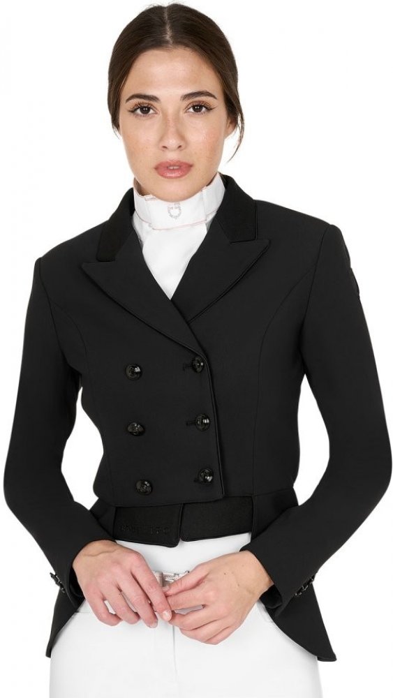 Ergonomický design kombinuje sportovní funkčnost s typickou elegancí značky Equestro, což činí tento frak ideální volbou pro závody i tréninky.
