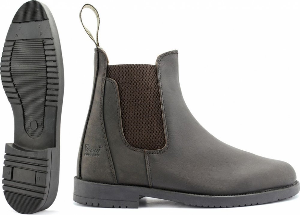 Jezdecká pérka z Nubuku (špičková hovězí kůže se sametovým vzhledem), s postranními elastickými pruhy pro lehké nazouvání/ zouvání a celkové skvělé padnutí. Podšívka je z maštěné kůže, boty mají protiskluzovou gumovou podrážku a dvojité prošívání. K dispozici jsou v černé a hnědé barvě.