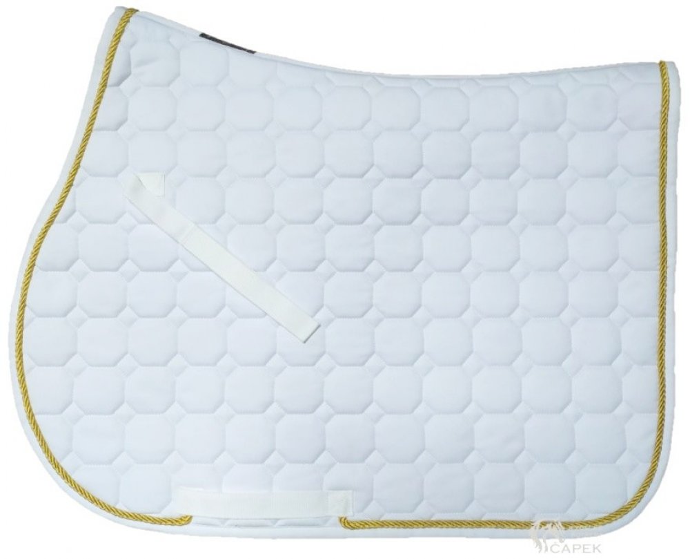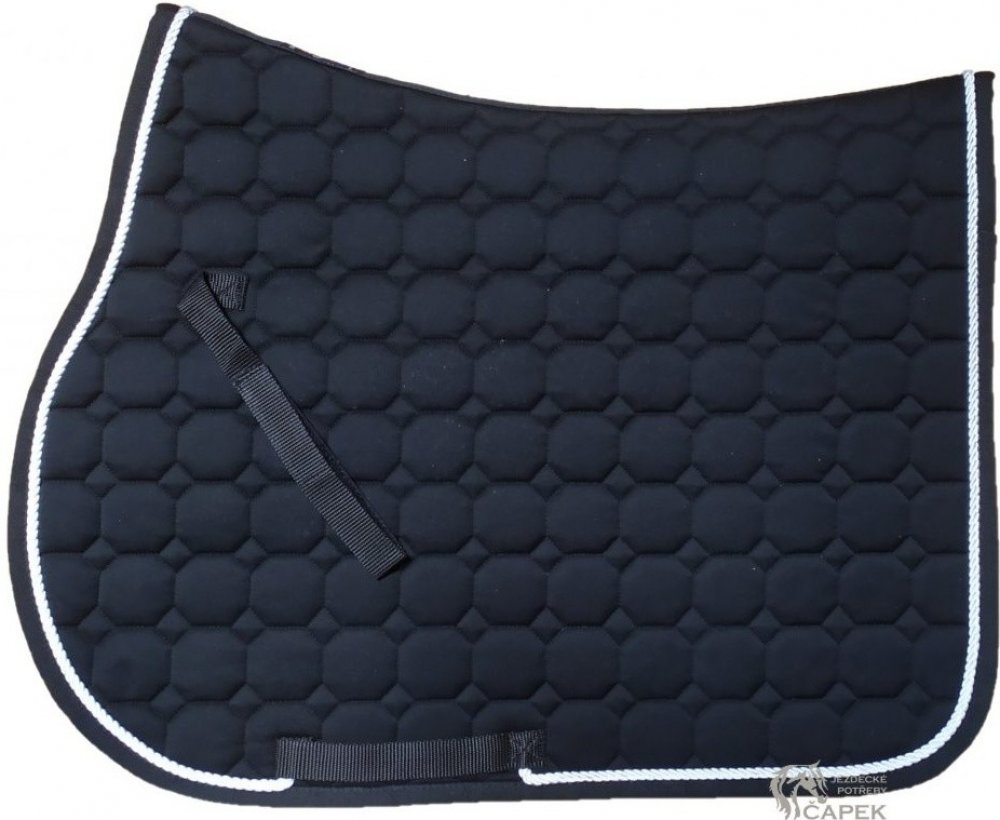 Kvalitní bavlněná dečka s octagonovým prošitím a ozdobnou paspulkou. ozdobná šňůrka v různých barevných provedeních kvalitní bavlna výborně odvádí pot drží tvar stálobarevná antibakteriální a antialergenní podšívka pásky k sedlu na suchý zip očka na podbřišník prošití ve tvaru osmihranu