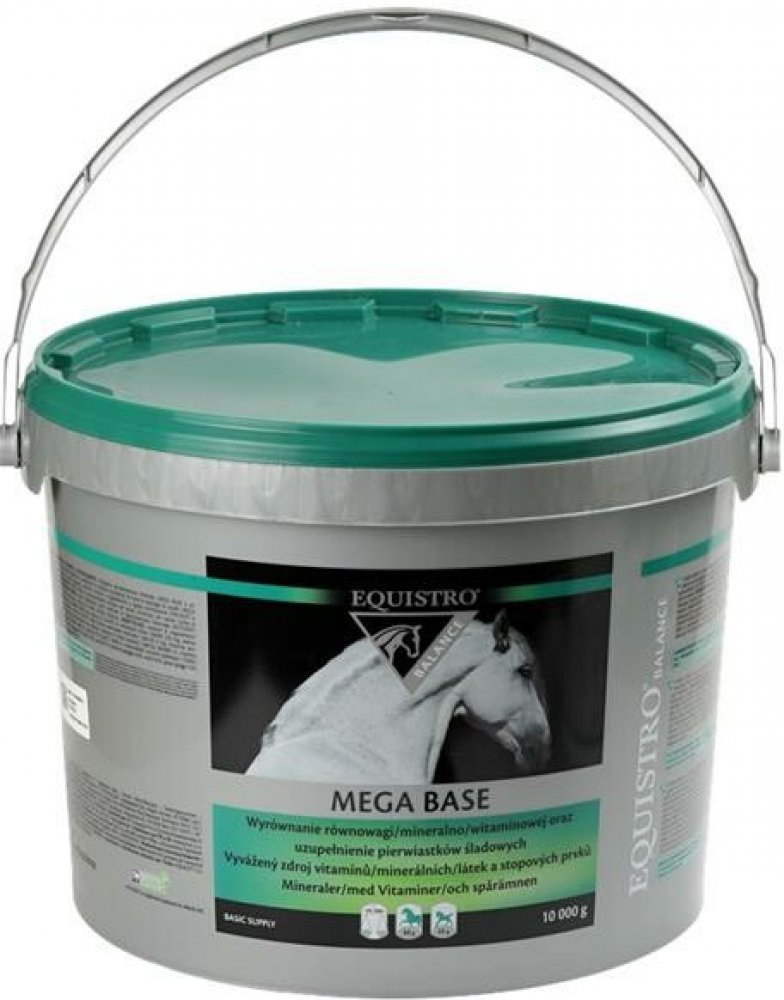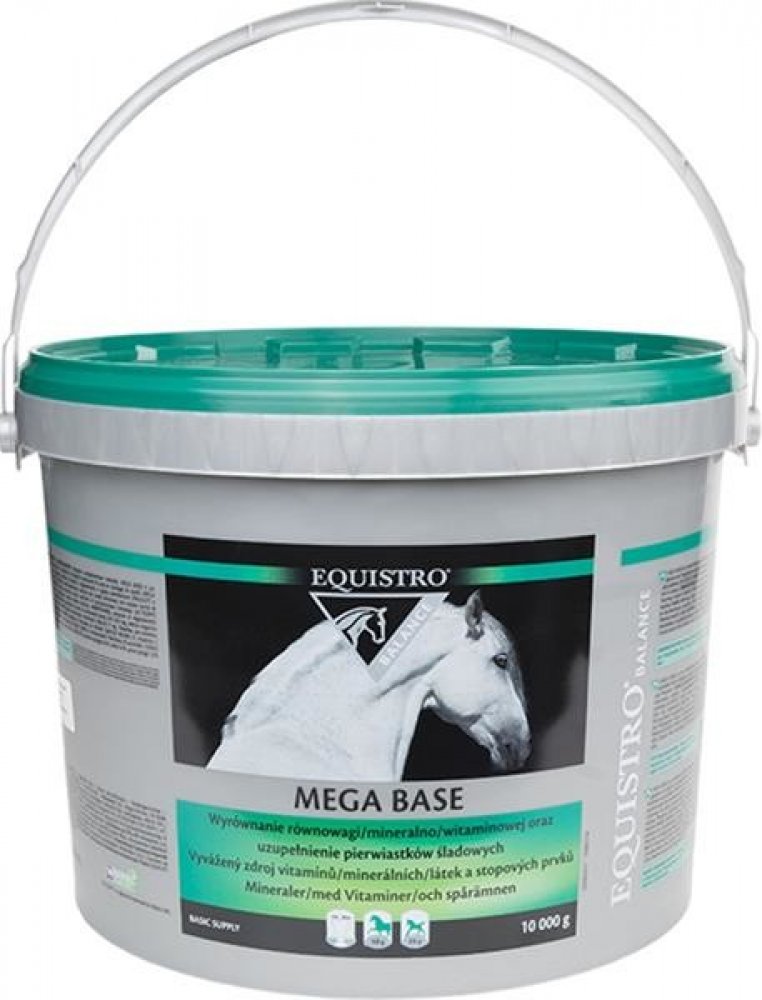 Equistro Mega Base je prémiový doplněk výživy, který dodává koním všechny důležité minerály, vitaminy a stopové prvky potřebné pro zdravý organismus. Pomáhá udržovat pevné kosti, silné svaly, zdravé klouby i optimální trávení. Je ideální pro koně, jejichž krmná dávka obsahuje více zrnin nebo sena s nižším obsahem živin.