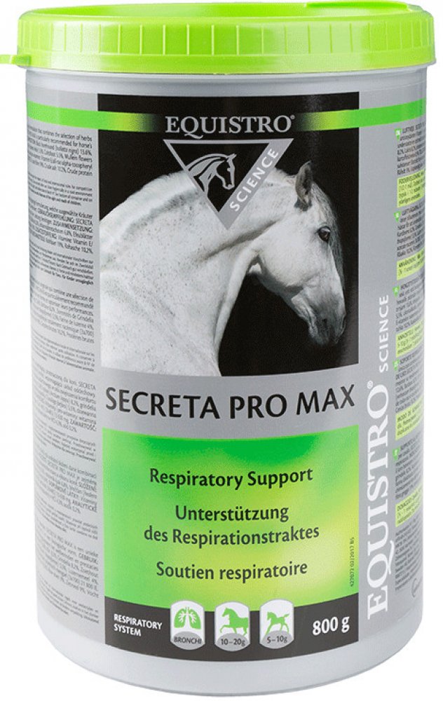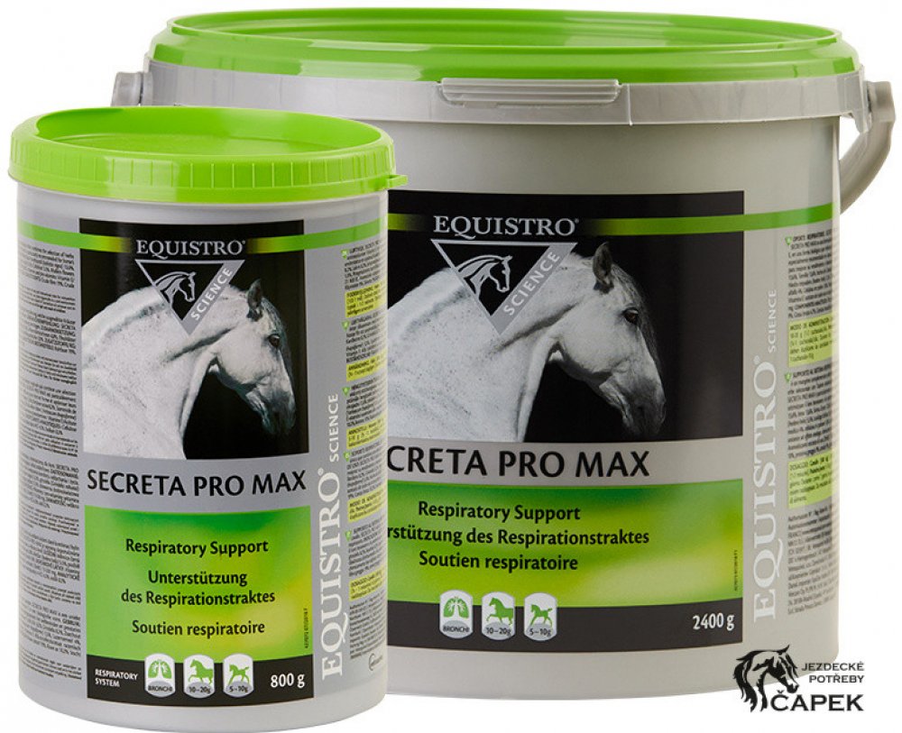 PODPORA DÝCHACÍHO APARÁTU. SECRETA PRO MAX je doplňkové krmivo peletované pro koně. SECRETA PRO MAX má unikátní složení dané kombinací bylin s antioxidačními účinky a vitamínem E v biologicky účinné formě, podporující funkci dýchacího aparátu. SECRETA PRO MAX je zejména doporučována pro koně vyžadující vyčištění dýchacího aparátu a k podpoře zdravého dýchacího aparátu pro optimalizaci zdravotního ...