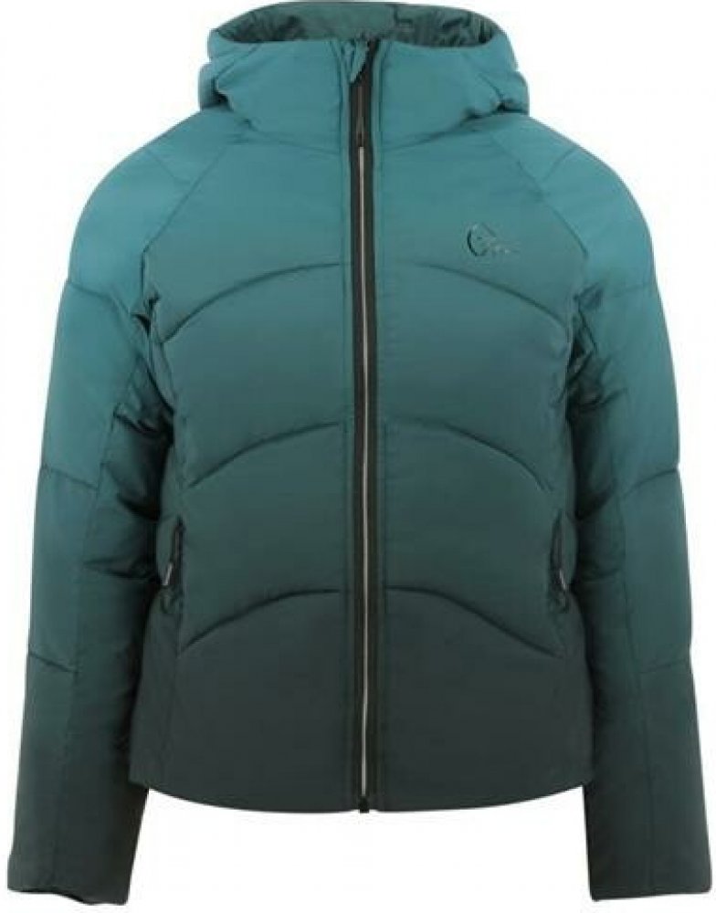 Dámská zateplená bunda v duhově tyrkysových barvách.