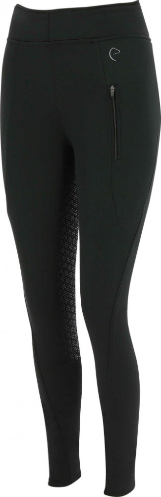 Tyto zimní jezdecké legíny jsou vyrobené z teplého a vodoodpudivého materiálu. Vysoce elastická tkanina zajišťuje maximální volnost pohybu. Díky rychleschnoucímu materiálu zůstanete v suchu i při intenzivní aktivitě. Legíny mají praktickou boční kapsu na telefon se zapínáním na zip. Pas s měkkou fleecovou podšívkou pro větší pohodlí a zvýšená zadní část, která poskytuje potřebnou oporu. Mají silik...