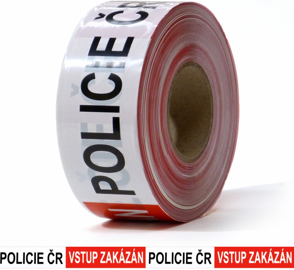 Vytyčovací páska Policie ČR - Vstup zakázán je nelepící páska s červenobílými kolmými pruhy. Práce s ní je velice jednoduchá.
