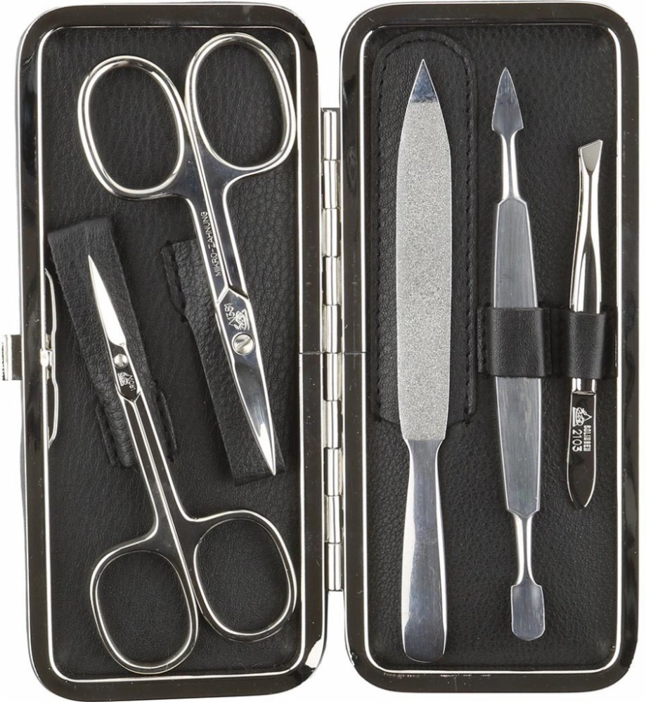 Plánujete si pořídit manikúrní set, díky kterému budete mít vždy všechny potřebné pomůcky po ruce? Se sadou ERBE SOLINGEN budete jistě spokojeni. Vyznačuje se totiž vysoce kvalitním a designovým zpracováním. Povrch pouzdra i jeho vnitřek je vyroben z hovězí kůže a je orámován pevným kovovým rámem. Nástroje jsou z poniklované oceli, která je odolná proti opotřebení, a všechny pomůcky zůstanou dlouh...