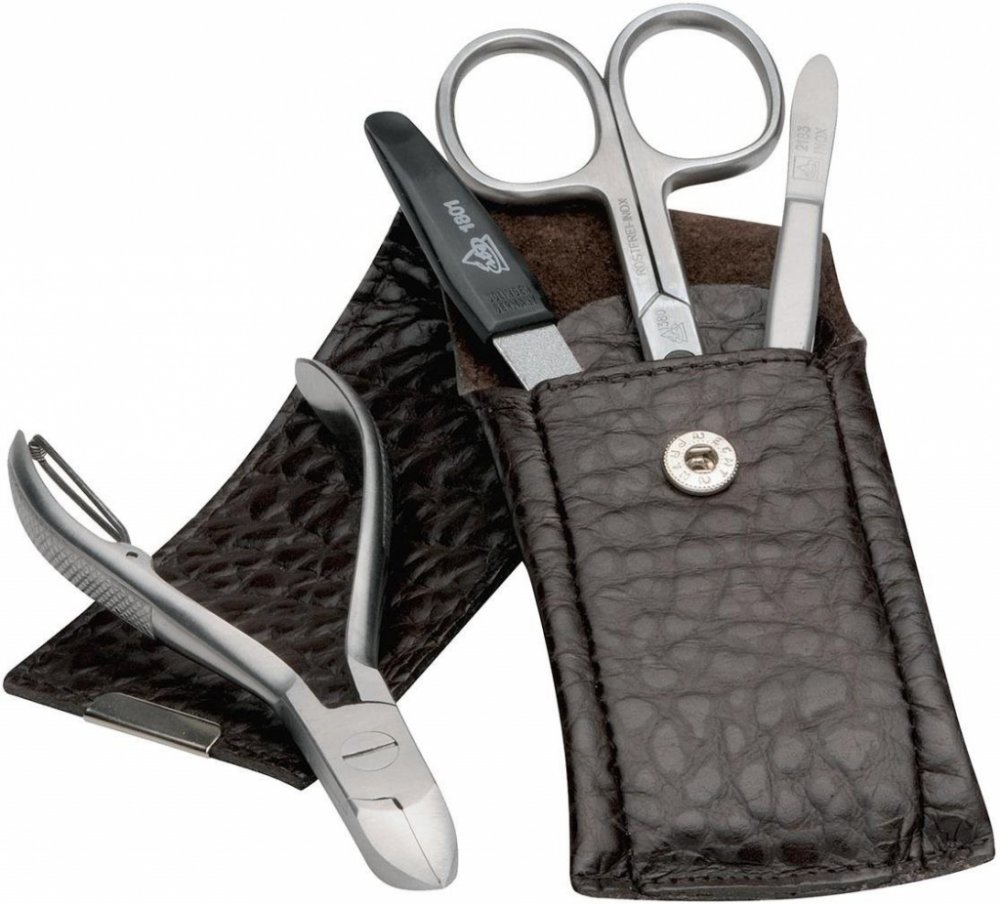 Stylová pánská kožená manikúra s prémiovými nerezovými nástroji německé značky Erbe Solingen.