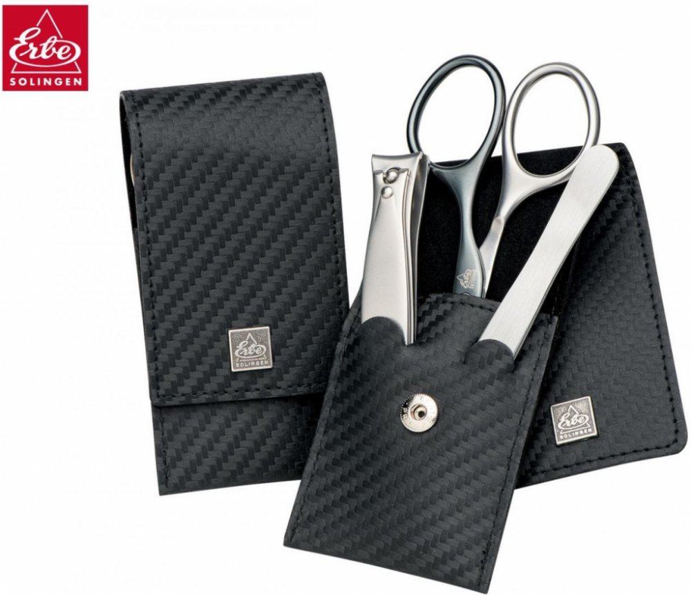 Pánská kvalitní manikůra 9493 Carbon Man černáErbe kolekce Carbon Manicure Men Pocket Case je pouzdro z pravé kůže s karbonovým vzhledem. Strukturovaný povrch mu dodává velmi zvláštní vizuální přitažlivost. Pouzdro je vybaveno kombinovanými nůžkami Erbe Selection Titan Edition se samoostřicím efektem a zapůsobí také svými vnitřními hodnotami.Pánská malá cestovní manikúra v elegantním pouzdře, kter...