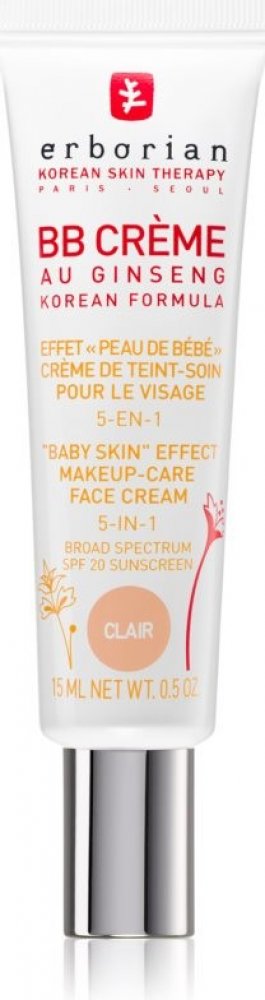 ERBORIAN BB CRÈME AU GINSENG CLAIR - BB krém odstín Clair - světlýBB CRÈME AU GINSENG je vytvořen originální korejskou recepturou pro perfektní pleť. Tento víceúčelový pečující přípravek čerpá z odborných znalostí korejských technologií. Obohacen ženšenem a bylinami, dodává pleti řadu benefitů, přizpůsobí se přirozenému t&oa...