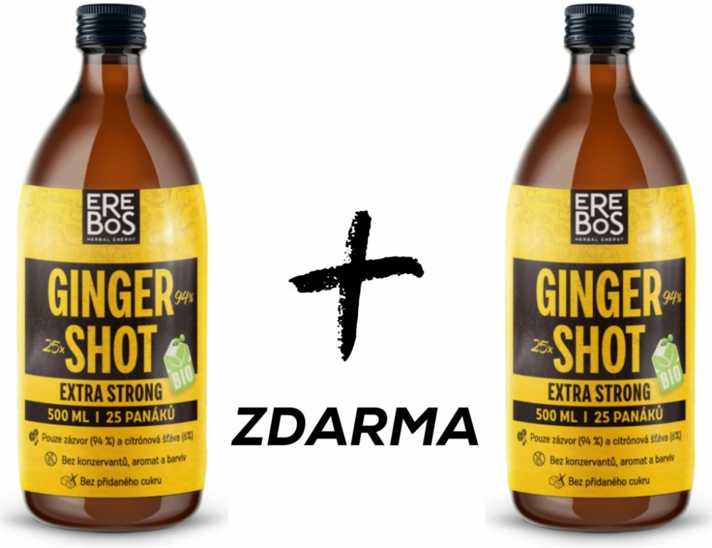 EREBOS Ginger Shot je BIO šťáva z kořene zázvoru a citrónu.