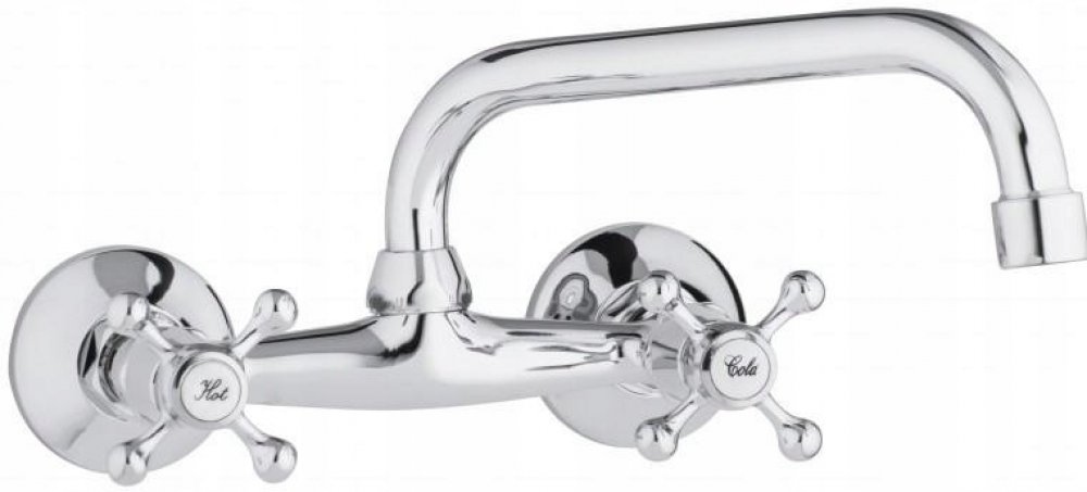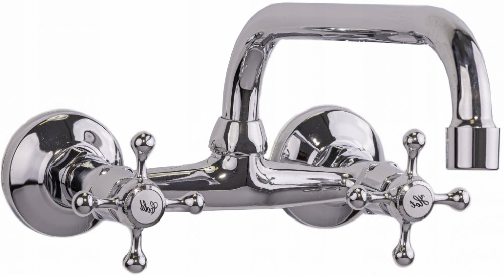Kuchyňská baterie dvouúchytková retro chromKlasická nástěnná dřezová baterie s dvojitou rukojetí v RETRO stylu