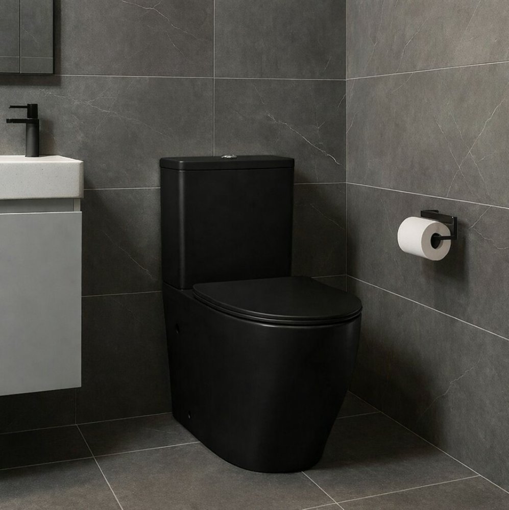 Erga Siena, WC kombi mísa s nádržkou včetně splachovací soupravy 620x365x830 mm + toaletní sedátko, černá matná, ERG-V03-SIENA-RIM-BK