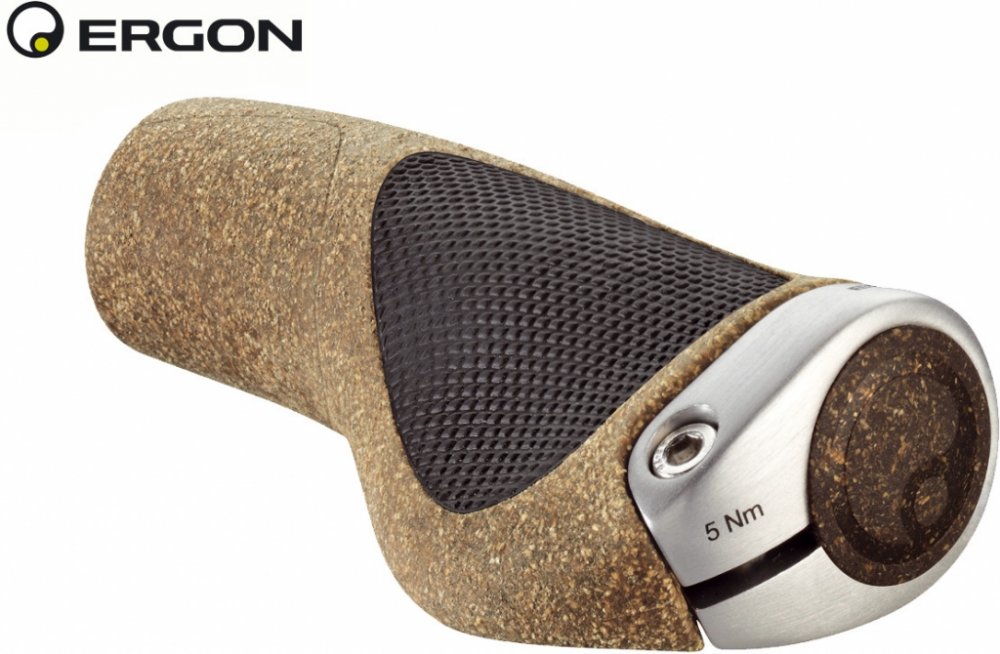 Gripy Ergon BioKork GP1 nabízí výbornou ergonomii a pohodlí. Gripy využívají jedinečné vlastností korku, který je antibakteriální a hypoalergenní. Gripy BioKorK GP1 jsou ze 40% složeny z korku, který pochází z trvale udržitelných lesů v Portugalsku. Vnitřní jádro gripů tvoří plast, zesíleny pomoci přírodního vlákna. Gripy GP1 nabízí optimální rozložení váhy. Je dostupný ve dvou velikostech a díky hliníkové objímce umožňuje snadnou instalaci. Grip lze upravit jednoduchým uvolněním šroubu a nastavit rukojeť do optimální polohy.