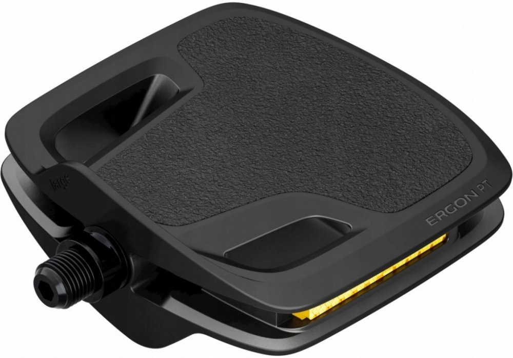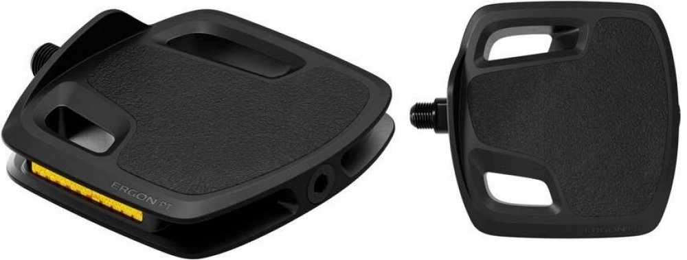 Pedály Ergon PT jsou platformové pedály s ergonomickým designem, který zlepšuje biomechaniku a pomáhá snižovat únavu při šlapání. Speciálně upravený povrch zajišťuje spolehlivou přilnavost s jakoukoliv obuví. I díky tomu jsou PT jedinými pedály oceněnými pečetí kvality Campaign for Healthier Backs (Aktion Gesunder Rücken e.V.).