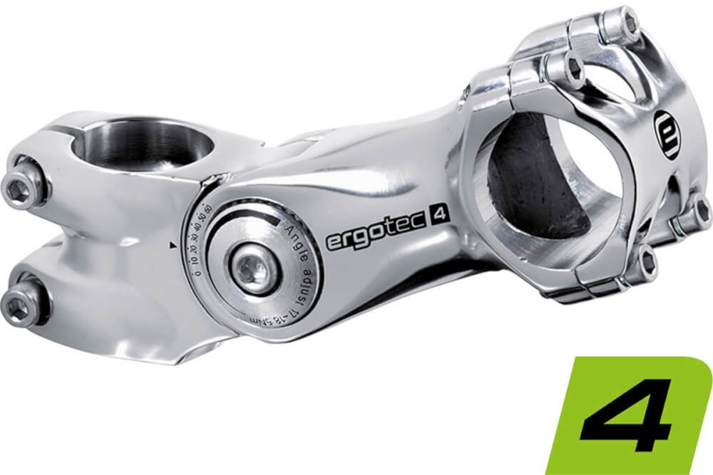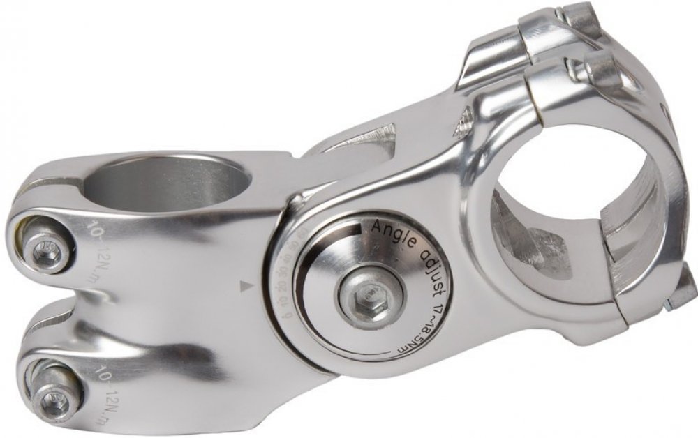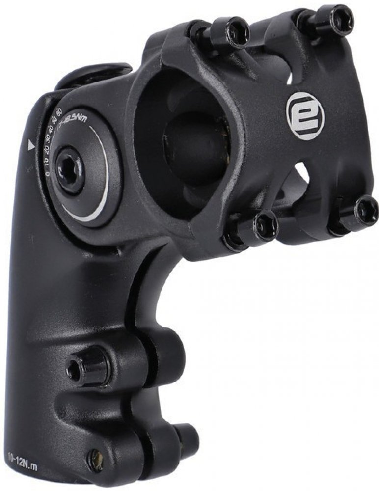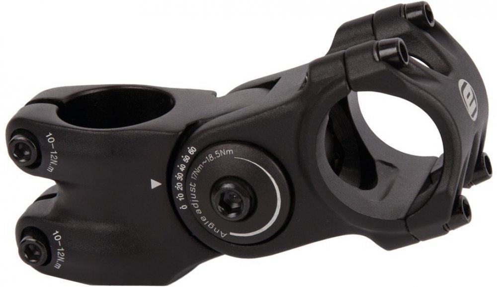 Stabilní, úhlově nastavitelný, 3D kovaný hliníkový přední představec se 4šroubovou objímkou řídítek, nastavitelným úhlem a průměrem objímky řídítek 31,8 mm, volitelně k dispozici čelní deska, viz příslušenství představce.