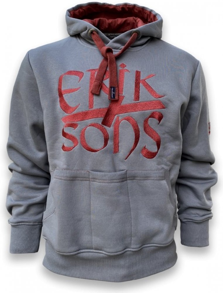 Mikina s kapucí vysoké kvality od německé firmy Erik and Sons.S velkým logem značky vpředu a velkou "klokaní" kapsou. Kapuci lze stáhnout tkanicí.
