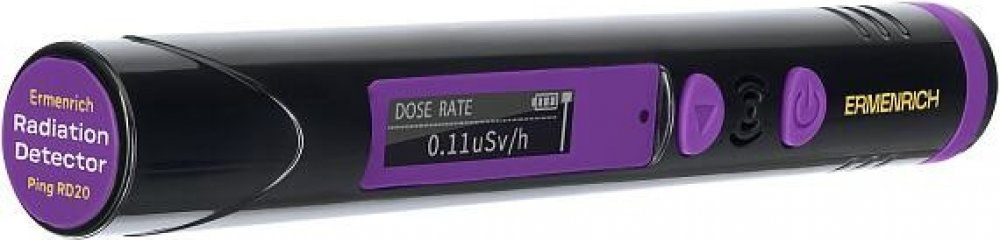 Dozimetr Ermenrich Ping RD20 je kompaktní a pohodlné zařízení pro stanovení radiace pozadí v prostředí, vodě, potravinách atd. Měří gama, beta a rentgenové záření v rozsahu od 0,05 µSv do 50 mSv.