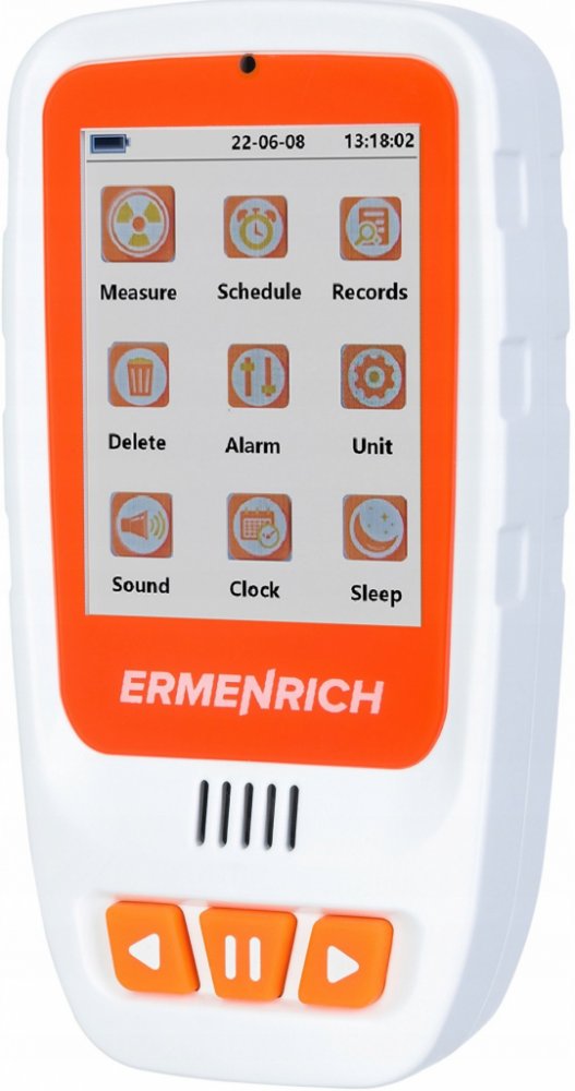 Dozimetr Ermenrich Ping RD40 se používá k měření záření gama, beta a rentgenového záření pozadí. Pomůže určit úrovně radiace v životním prostředí, vodě, potravinách a dalších objektech. Pomůže určit úrovně radiace v životním prostředí, vodě, potravinách a dalších objektech. K měření úrovně radiace se používá Geiger-Mullerův čítač, který pracuje v rozsahu 0,08 µSv–50 mSv. Na obrazovce se současně z...