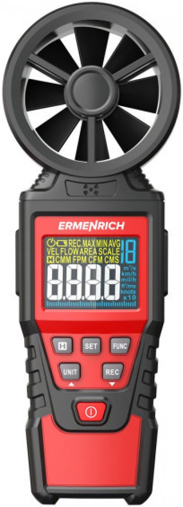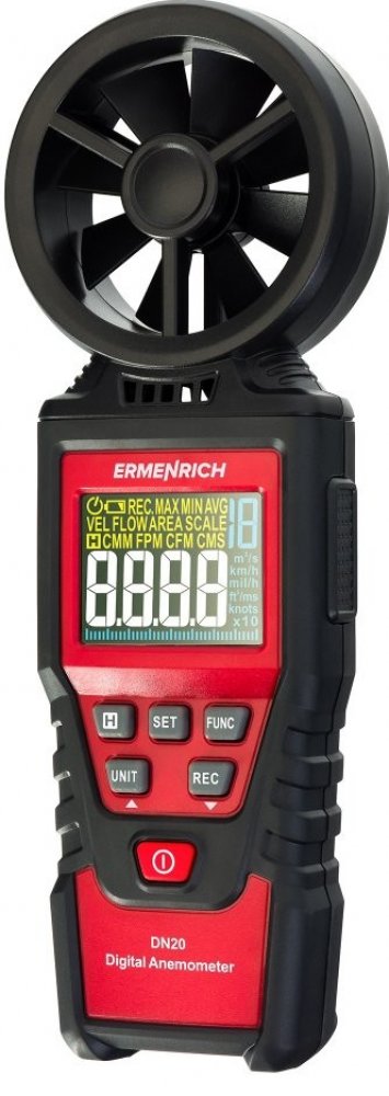 Digitální anemometr Ermenrich Seek DN20 je kompaktní přístroj pro měření rychlosti proudění vzduchu ve venkovním i vnitřním prostředí (ventilační systémy apod.). Je to jednoduchý a snadno použitelný přístroj, který je vhodný pro použití amatéry i profesionály.