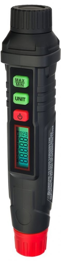 Digitální luxmetr Ermenrich Seek MX10 je vhodný pro měření parametrů osvětlení v nejrůznějších prostorách. Umožňuje monitorovat dodržování pracovních podmínek v kancelářích, vzdělávacích institucích a výrobních zařízeních a také kontrolovat prostory z hlediska dodržování přijatých norem. Zvláštností tohoto modelu jsou jeho kompaktní rozměry. Malý luxmetr velikosti pera určuje úrovně osvětlení s vysokou přesností a umožňuje zaznamenávat maximální naměřené hodnoty. Přístroj je napájen 2 bateriemi AAA (nejsou součástí sady). Pokud je kapacita baterií nízká, zobrazí se na displeji příslušná ikona upozorňující na nutnost výměny baterií. Luxmetr se automaticky vypne po 10 minutách nečinnosti. Klíčové vlastnosti: Měření úrovně osvětlení, jednotky měření: lux, stopová kandela Kompaktní tělo, autonomní provoz na 2 baterie Automatické vypnutí po 10 minutách, indikátor vybitých baterií.