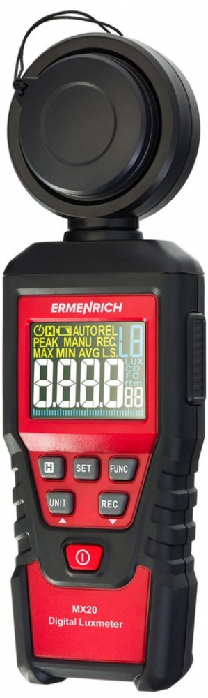 Digitální luxmetr Ermenrich Seek MX20 je přenosný měřič úrovně osvětlení, který umožňuje měření v jednotkách luxů a stopových kandel. Přístroj nabízí široké možnosti nastavení včetně volby typu světelného zdroje, automatického nebo manuálního výběru rozsahu a ukládání mezních hodnot. Díky přídavným funkcím, jako je přidržení zobrazení naměřené hodnoty, relativ...