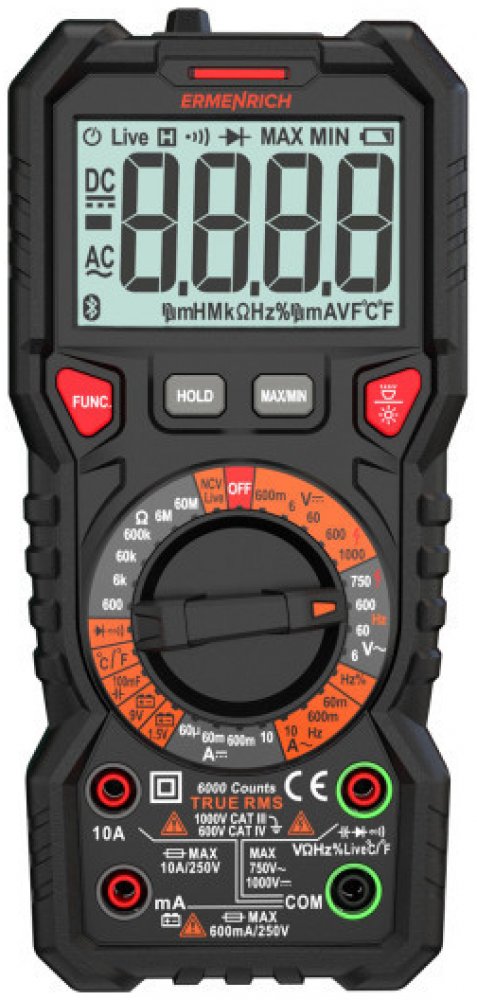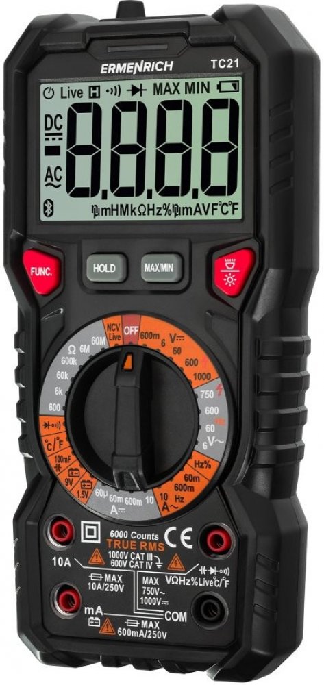 Digitální multimetr Ermenrich Zing TC21 je multifunkční přístroj pro testování a měření parametrů elektrických sítí různých úrovní složitosti. Je navržen speciálně pro profesionální použití a dokáže uspokojit potřeby elektrikářů, techniků a pracovníků údržby. Kromě základních funkcí voltmetru, ampérmetru a ohmmetru obsahuje také měřič frekvence, kapacity, pracovního cyklu a teploty. Multimetr je p...