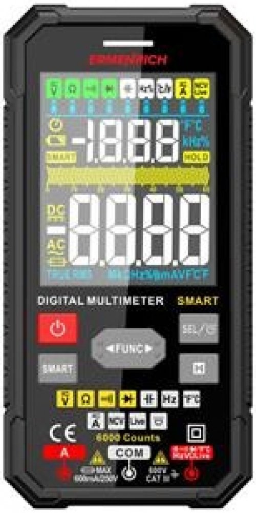 Digitální multimetr Ermenrich Zing TC27 se používá k testování elektrických zařízení a elektrických obvodů. Jeho široká funkčnost vám umožní používat jej nejen doma, ale i pro profesionální práci. Multimetr je vynikající volbou pro mechaniky, elektrikáře, opraváře a další technické pracovníky. Multimetr Ermenrich Zing TC27 je přístroj True RMS, který zaručuje vysoce přesná měření nesinusových signálů. Multimetr má 7 základních funkcí: měří stejnosměrné a střídavé napětí, stejnosměrný a střídavý proud, odpor, frekvenci, kapacitu, pracovní cyklus a teplotu. K měření teploty se používá snímač na bázi termočlánku. Funkce Smart umožňuje měřit některé základní veličiny, aniž byste museli multimetr ručně nastavovat: tato funkce automaticky rozpozná signál. Multimetr dokáže lokalizovat přerušené obvody a zkraty, testovat diody a určovat fáze. Všechny naměřené hodnoty se zobrazují na velkém podsvíceném barevném displeji - ve formě číslic a grafická stupnice. K dispozici je funkce přidržení zobrazení naměřené hodnoty. Přístroj je napájen pomocí standardních baterií.