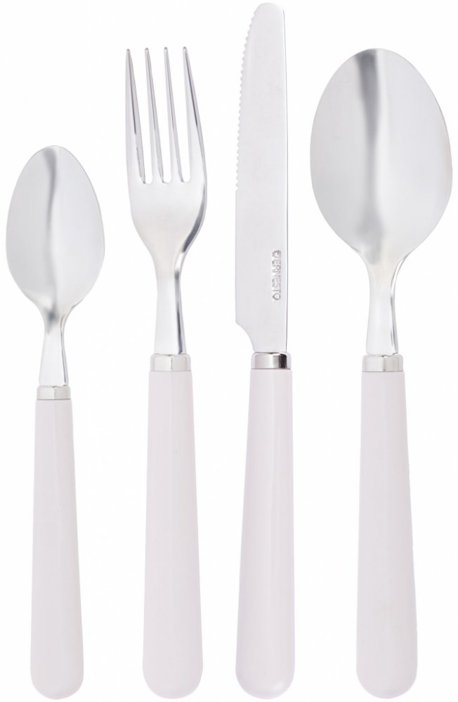 Sada příborů Ernesto z nerezové oceli, 24 dílná Vlastnosti S plastovými rukojeťmi Nože z vysoce kvalitní nerezové oceli Polévkové lžíce, vidličky, čajové lžičky z nerezové oceli 18/0 24 dílná Charakteristika produktu tabletd Vhodné do myčky nádobí: ano Vhodné do mikrovlnné trouby: - Materiál: Nerezová ocel, plast Počet osob: až 6 osob Obsah balení: 6x vidlička; 6x nůž; 6x polévková lžíce; 6x čajov...