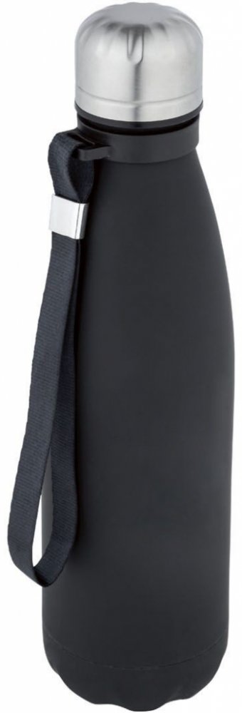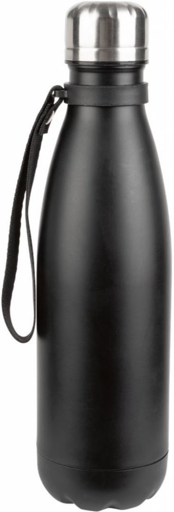 Praktické poutko na nošení Láhev z kvalitní nerezové oceli Dvojitá stěna udržuje nápoje déle horké nebo studené Šroubovací uzávěr se silikonovým těsněním Vhodná i pro nápoje s oxidem uhličitým Objem: cca 0,5 l Rozměry cca 7 x 26,4 cm (Ø x V)