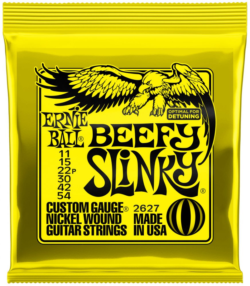 Struny pro elektrickou kytaru Struny Slinky Nickel Wound značky Ernie Ball jsou mezi strunami pro elektrické kytary naprostým bestsellerem a zlatým standardem. Vynikají zejména kvalitou použitých materiálů, precizním zpracováním a zvukovou všestranností, díky níž se uplatní v téměř jakémkoliv hudebním žánru. Jejich základem je šestihranné ocelové jádro a válcové vinutí z poniklované oceli. Výsledkem je frekvenčně vyvážený tón, který se uplatní v rockové, metalové, popové i bluesové hudbě.