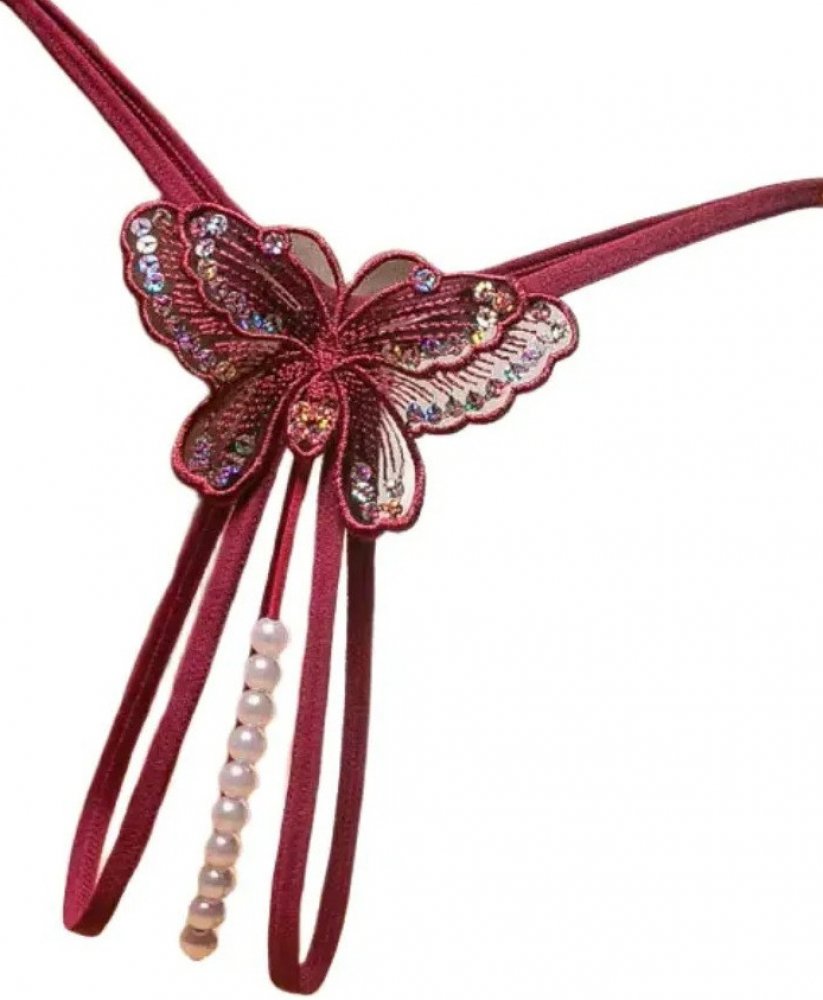 Jedinečné detaily motýlka s umělými perlami na přední straně a jemný lesk na partiích hýždě. Velikost je univerzální.