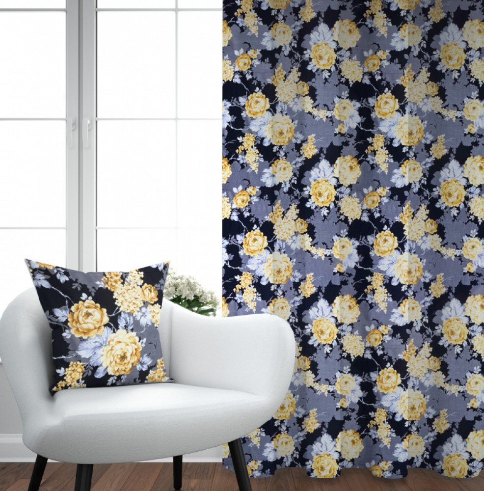 Ervi bavlněný závěs - žluté květy na černém