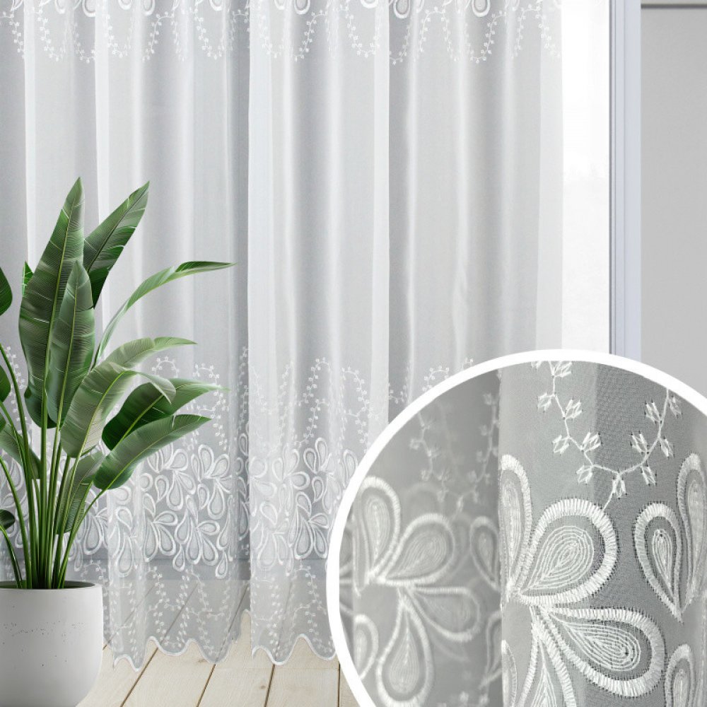Ervi voálová záclona bílá s výšivkou - 2239, metráž