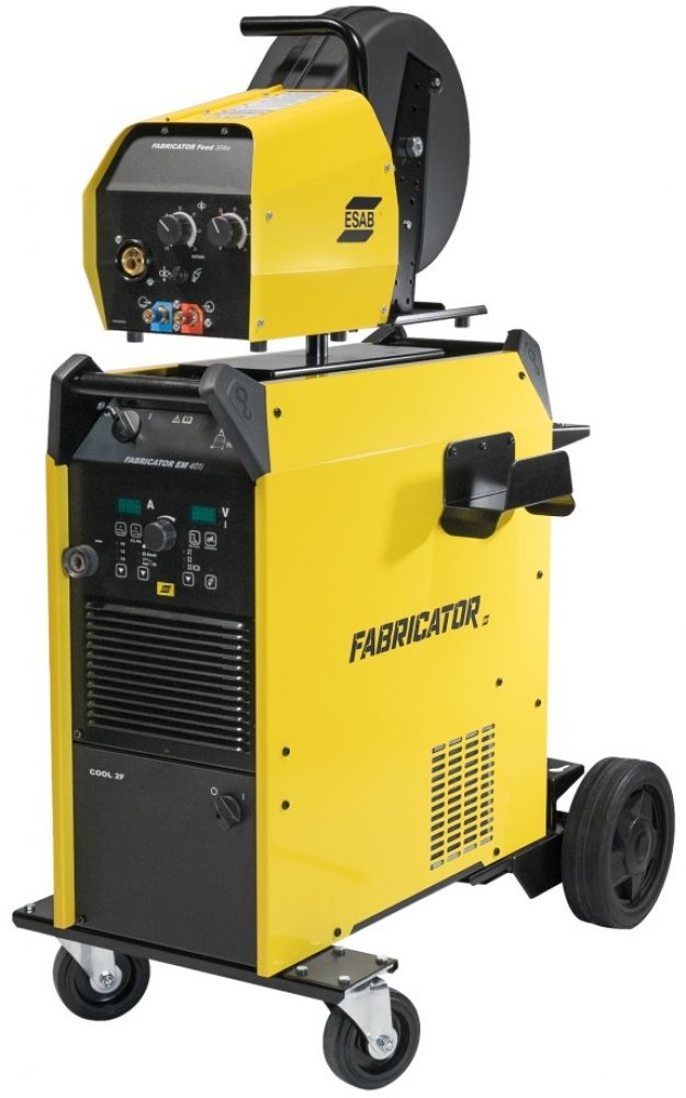 Svařovací zdroj ESAB Fabricator EM 401i s odděleným podavačem ESAB Fabricator Feed 304w je vysoce výkonný invertorový zdroj určený pro svařování metodami MIG/MAG a MMA. Jeho předností je moderní ovládací panel pro snadné nastavení všech svařovacích parametrů, kdy je veškerý důraz kladen na snadné ovládání a vysokou efektivitu a produktivitu. Fabricator EM 401i pracuje s vysokým svařovacím výkonem 400 A při 60 % dovoleném zatížení (310 A při 100 % dovoleném zatížením). Uvedené parametry jsou shodné jak pro metodu MIG/MAG, tak i pro metodu MMA.