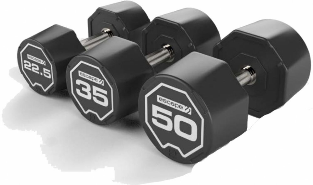 Gumové jednoruční činky EscapeJednoruční činky splňují základní parametry činek Escape a jsou zpracovány patentovaným způsobem dvojitého zámku a kvalitního svaření. Okraje činky jsou oválné a směrem k rukojeti přecházejí do tvaru osmiúhelníku, tím se při odložení nekutálejí, ale drží na místě. Označení hmotností není pouze potištěno na povrchu, ale díky technologii 3D se nestane, že by se čísla ča...