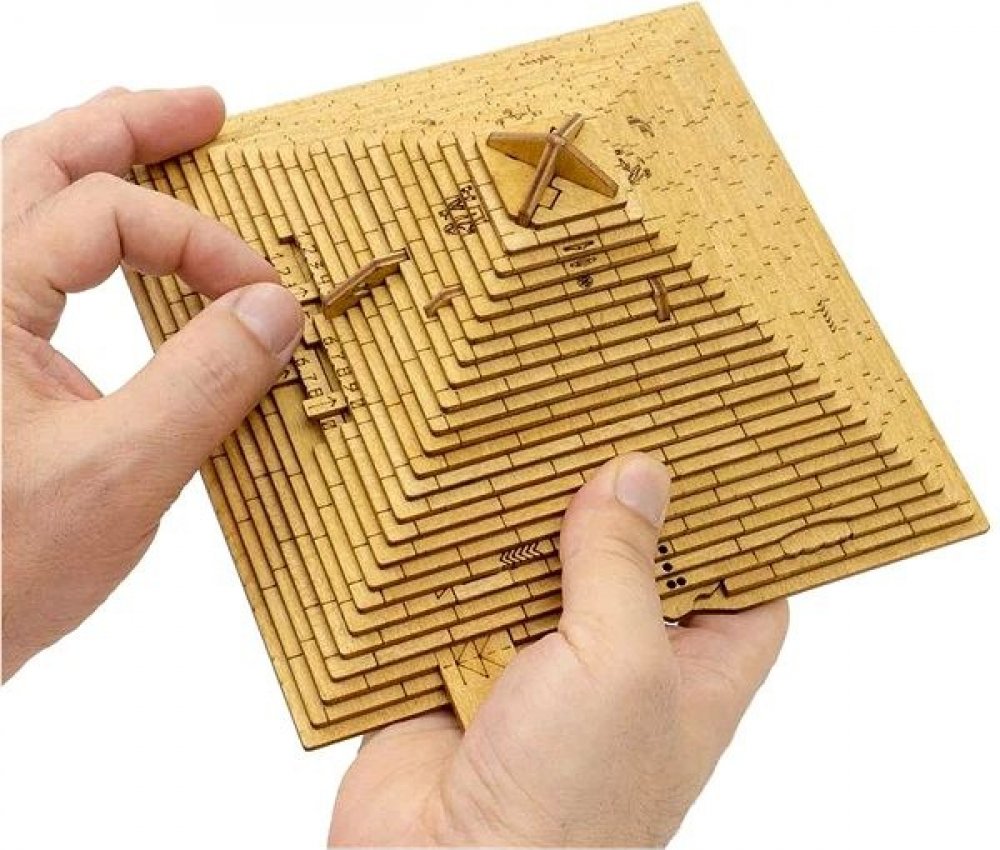 Po tisíce let střežili egyptští učenci a kněží pokladnici vědění, zdroj skutečné moci. Ukryli se hluboko ve starobylé pyramidě plné magických pastí a hádanek, aby odradili nezvané hosty a střežili tajemství před nepovolanými. Ani faraoni, ani největší vzdělanci perské říše nedokázali proniknout dovnitř a odhalit posvátnou moudrost Egypťanů. Máte odvahu překonat všechny nástrahy starověkých architektů a vyzvednout ztracené znalosti? Využijte jedinečnou příležitost a vydejte se na vzrušující dobrodružství, rozluštěte záhadu pyramidy a vyzvedněte poklady ze síně vědění! ∗*∗ Nepovažujete hotový hlavolam za dostatečnou výzvu a chcete jej napřed sami sestavit? S novou řadou mechanických puzzle EscapeWelt máte jedinečnou příležitost! Stavebnicí z překližky vyzkoušíte svůj důvtip a dovednosti hned dvakrát. Výsledný model ukrývá malou přihrádku, kterou můžete kreativně využít k úschově vodítka ve vlastní dobrodružné hře, nebo zpestření zážitku z drobného dárku. Součástí balení je podrobný obrázkový návod k sestavení a postup odemknutí, který obsahuje také QR kód vedoucí na stránku s nápovědou. Rébus má vždy jedno řešení, kvalitním provedením je ale předurčen k dalšímu použití, neváhejte jím proto dále obdarovat a vyzvat své přátele, nebo členy rodiny. Hlavní vlastnosti: 70 precizně vyřezaných dřevěných dílků rozměry vnitřní přihrádky 5×5×5 cm rozměry balení: 19x19x10 cm vysoká obtížnost sestavení a řešení doporučený věk: 14+ vyrobeno v EU Lipská společnost EscapeWelt, jak už její název napovídá, se zabývá zejména tvorbou tzv. únikových her. Se stejnou vášní přitom ovšem vyvíjí a vyrábí také řadu originálních hlavolamů, které z jejích únikových her přímo vychází. Výroba probíhá ve dvojici továren v EU, a to za použití přírodních materiálů, zejména pečlivě vybraného, kvalitního březového dřeva, díky němuž jsou jejich rébusy příjemné na pohled i na dotek. Finální produkty jsou sestavovány ručně, s velkým důrazem na kvalitu a spolehlivost. Práci a snahu vloženou do výrobků ocenily již tisíce zákazníků, kteří se opakovaně vracejí a motivují společnost k tvorbě dalších unikátních hádanek.