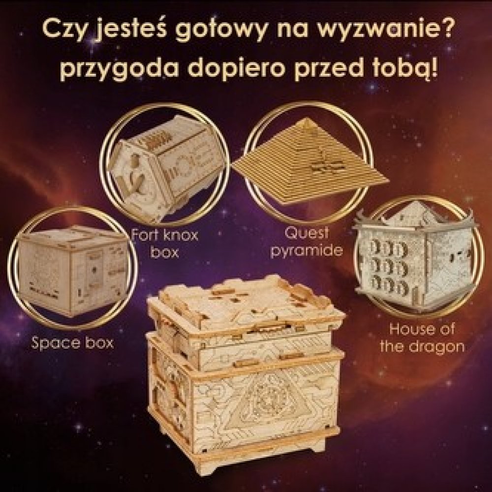 Zakuste atmosféru únikových her s originálními scénáři a hádankami u Vás doma! Každý hlavolam ukrývá malou přihrádku, kterou můžete kreativně využít k úschově vodítka ve vlastní dobrodružné hře, nebo zpestření zážitku z drobného dárku. Součástí každého balení je jednoduchý obrázkový návod, který obsahuje také QR kód vedoucí na stránku s nápovědou. Rébus má vždy jedno řešení, kvalitním provedením je ale předurčen k dalšímu použití, neváhejte jím proto dále obdarovat a vyzvat své přátele, nebo členy rodiny.