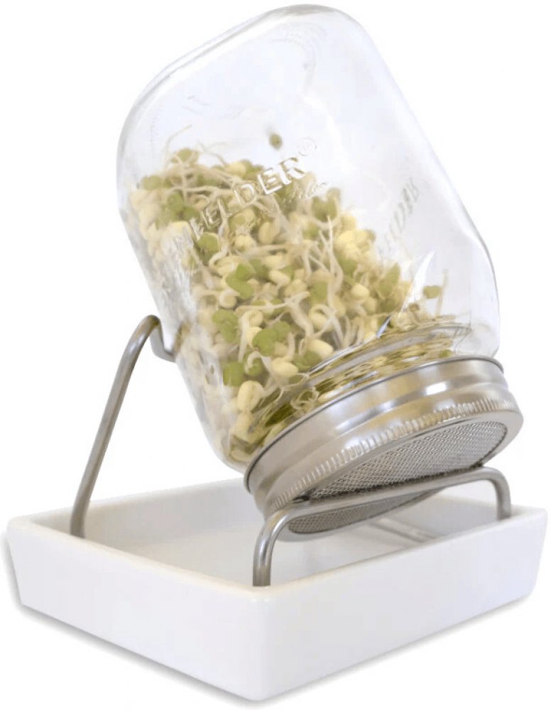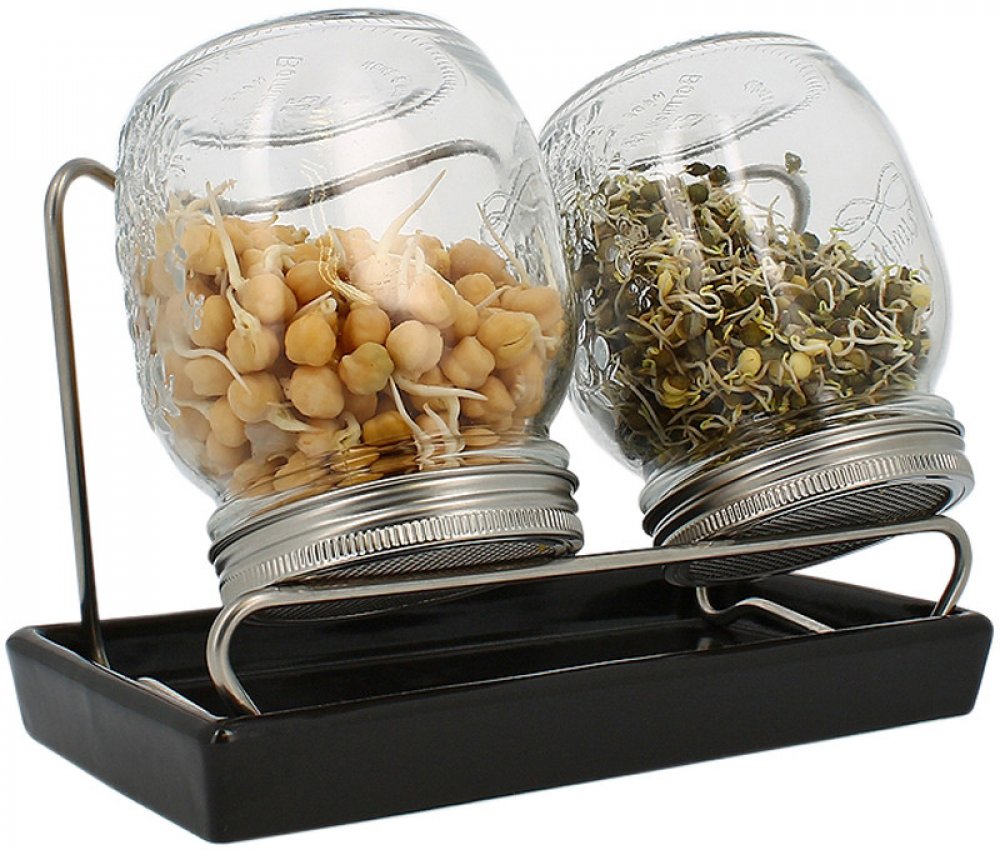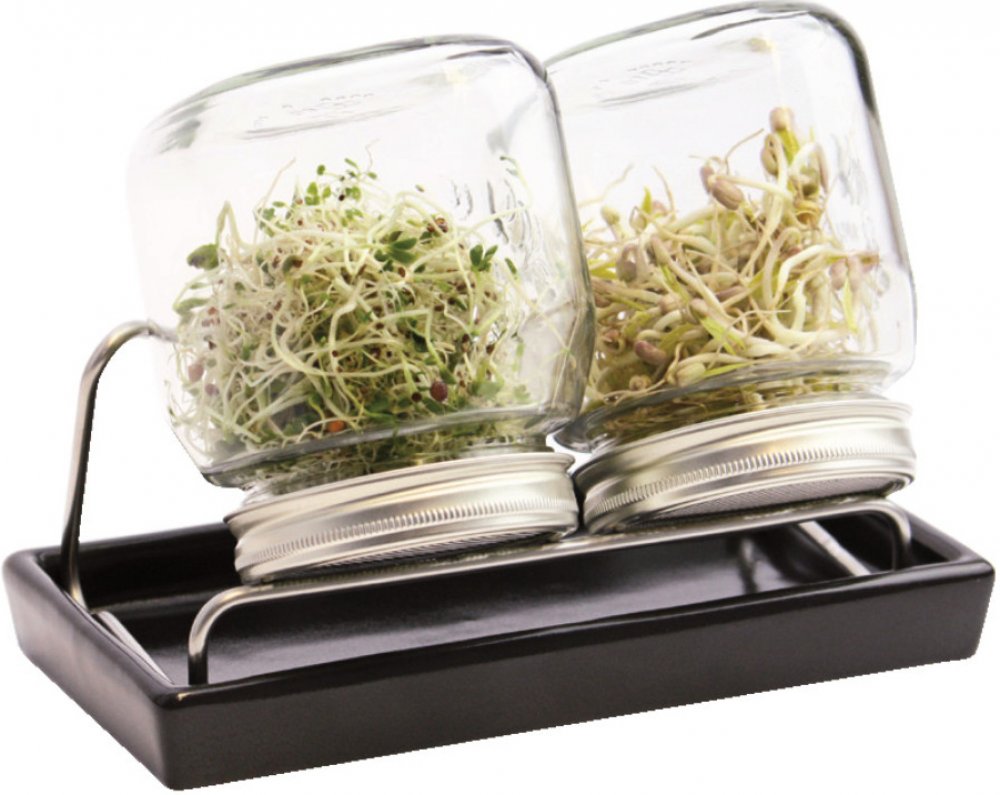 Semena se přímo v klíčicí sklenici namáčejí, proplachují a pěstují až do sklizně.