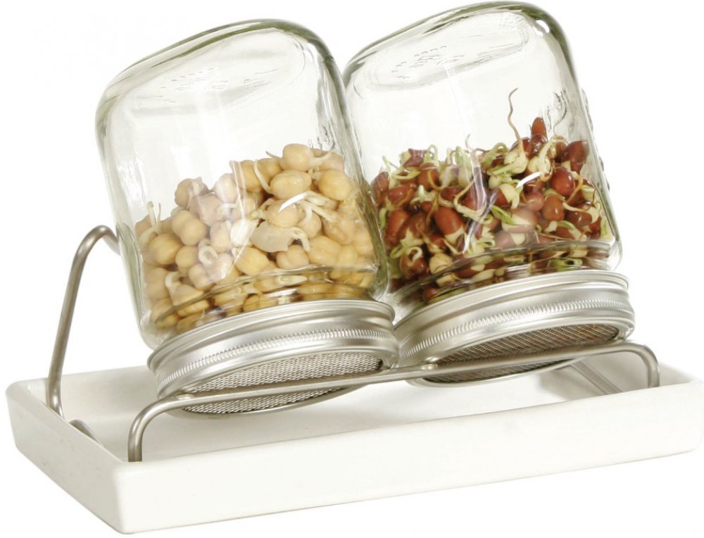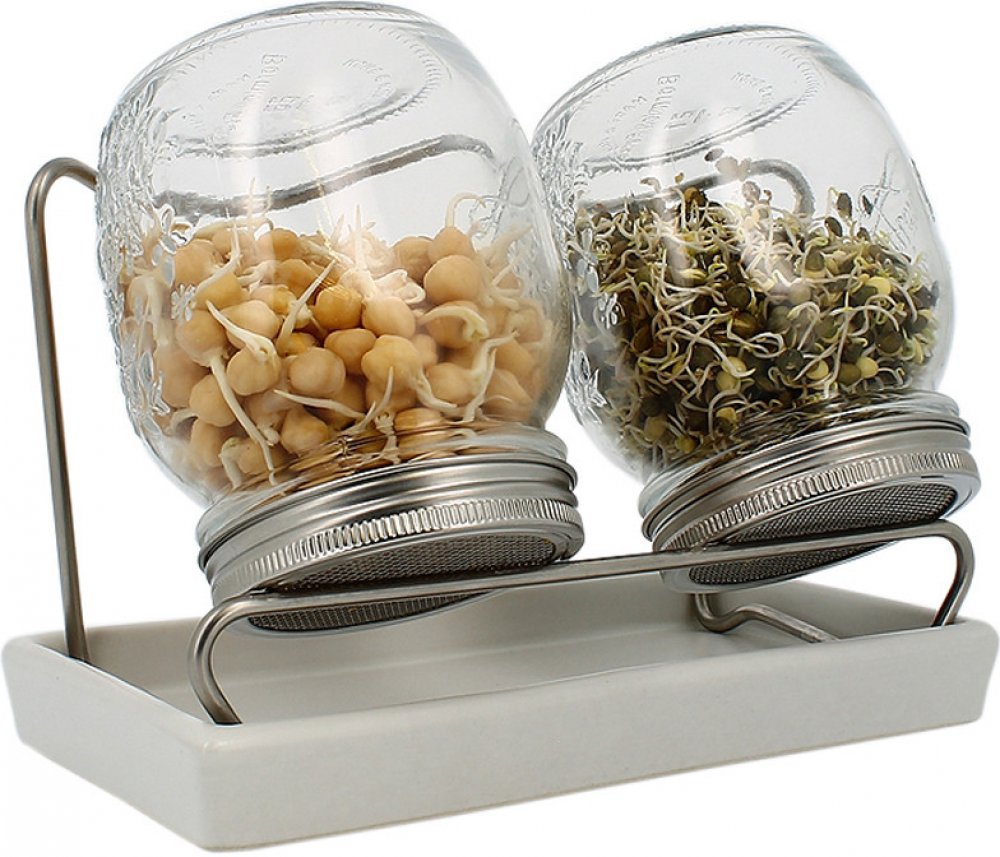 Sada II 750 ml sklenice na klíčení, se sítkem s jemnými oky a šroubovacím kroužkem z nerezové oceli.