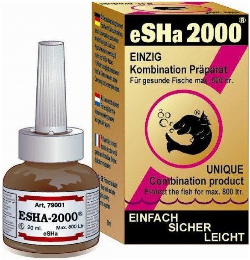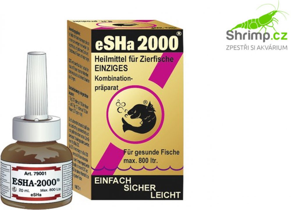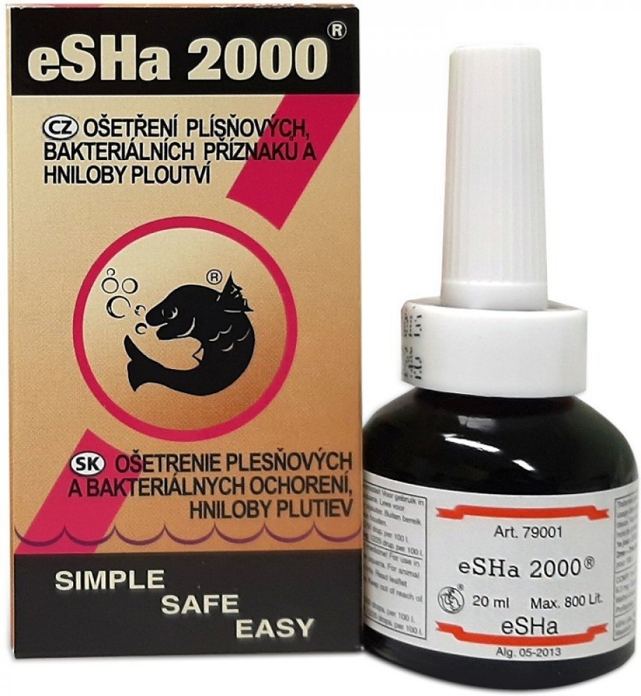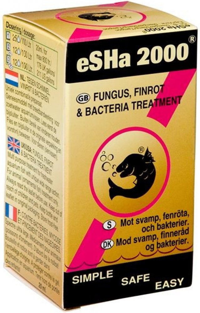 eSHa 2000 napomáhá při ošetření ryb s příznaky plísňovým a bakteriálním infekcím a přispívá ke zlepšení stavu ryb, u kterých se vyskytli vnější parazité. Velkou předností je schopnost pomoci vyhojit poranění a ochránit kožní vrstvy. Výhodou je, že eSHa 2 000 má široké spektrum použití a napomáhá pro lepší péči o ryby při výskytu choroboplodných organizmů a nepříznivých podmínek jako jsou: plísně (...