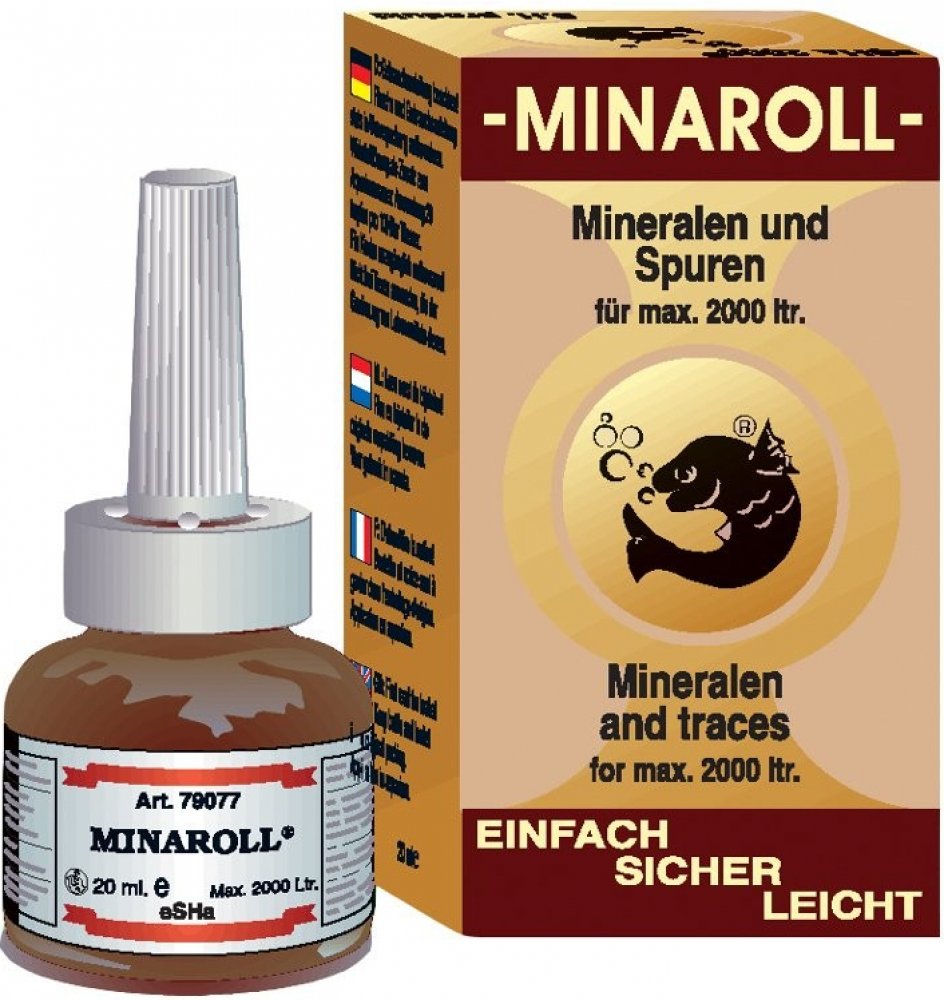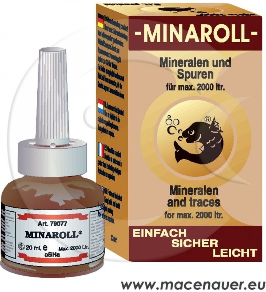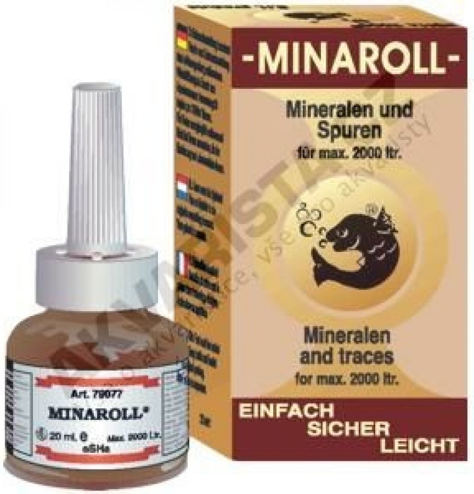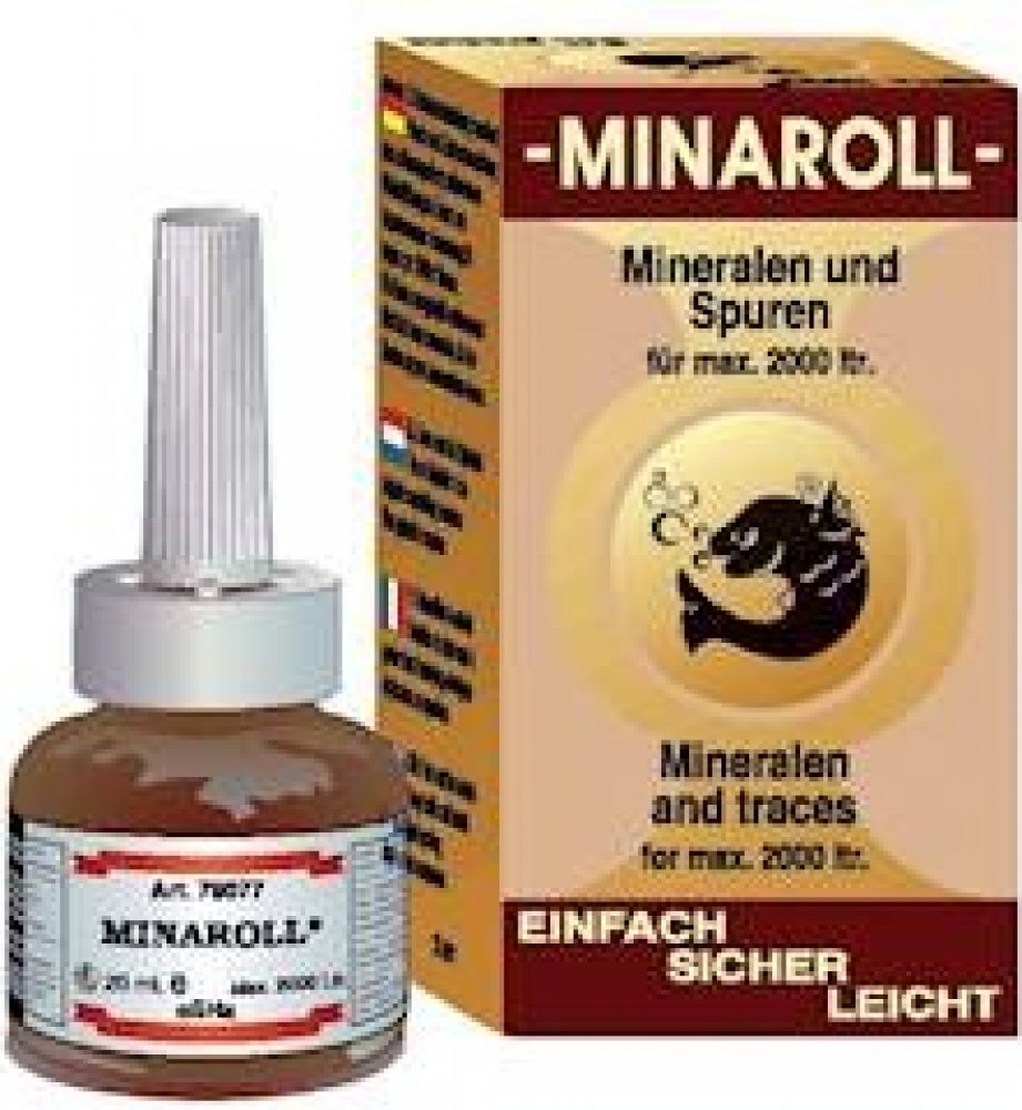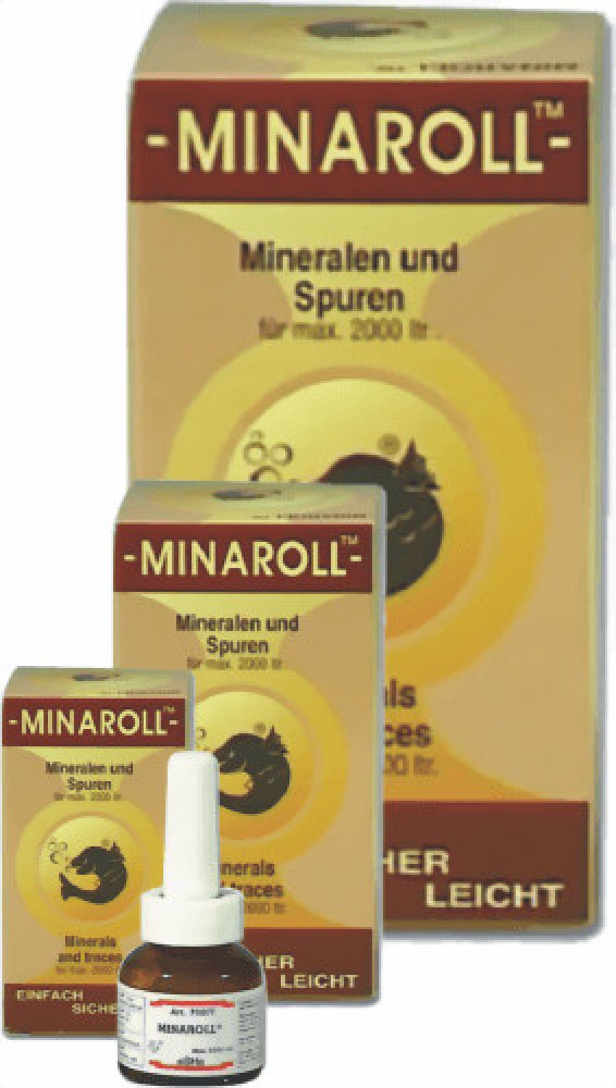 Vitaminy, stopové prvky a minerální látky jsou velmi důležité pro organismus všech akvarijních živočichů a potřebná denní dávka je závislá na intenzitě látkové výměny. Minaroll zajišťuje přísun postačujících množství důležitých vitaminů spolu s podstatnými minerálními látkami a stopovými prvky.