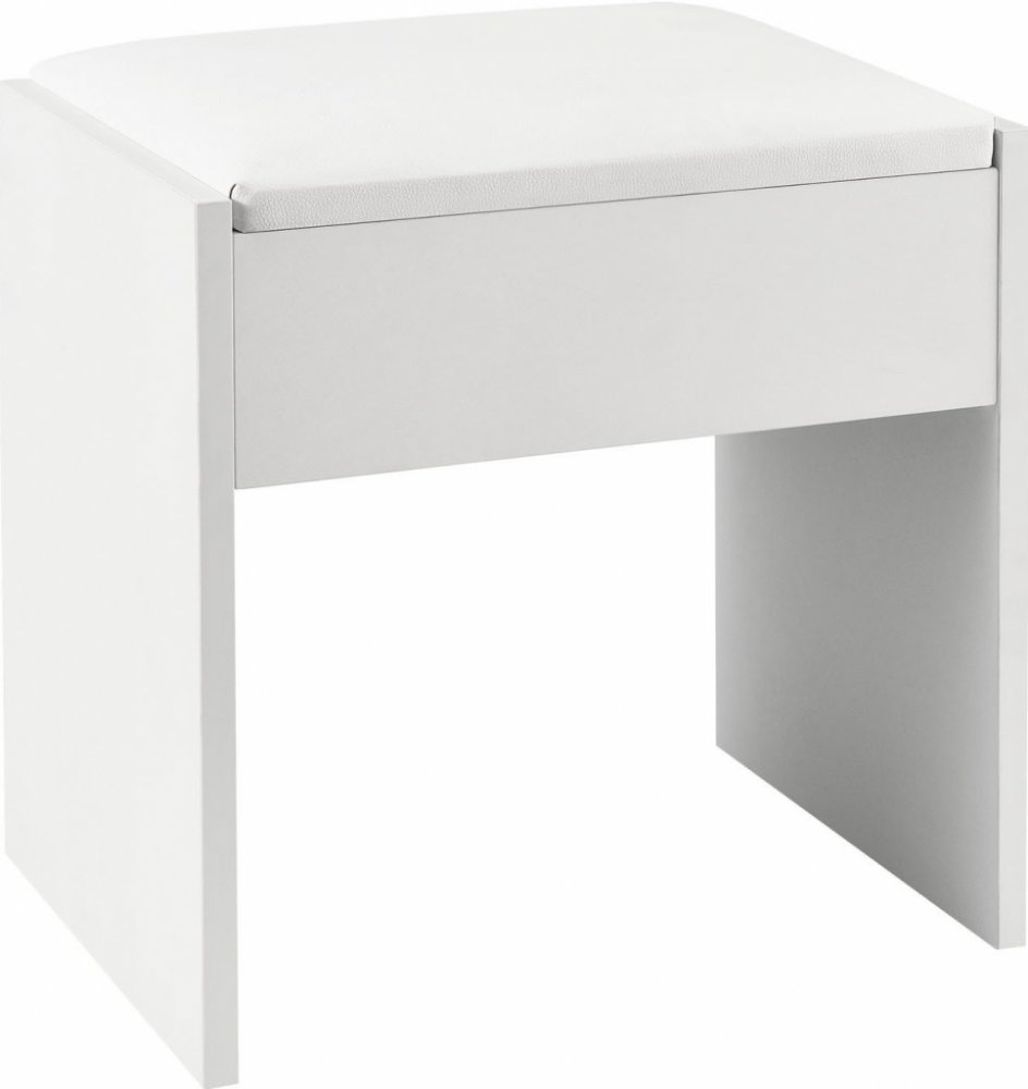 Pohodlná židle ke toaletnímu stolku s polštářem na sezení je dokonalým doplňkem k vašemu make-up stolu. Taburetka s čalouněním ze syntetické kůže vám poskytne dostatečné pohodlí při každodenním líčení. Můžete ho také použít jako taburet v obývacím pokoji, ložnici nebo dětské izbe.Taburetka je vyrobena z bílého lakovaného MDF dřeva.