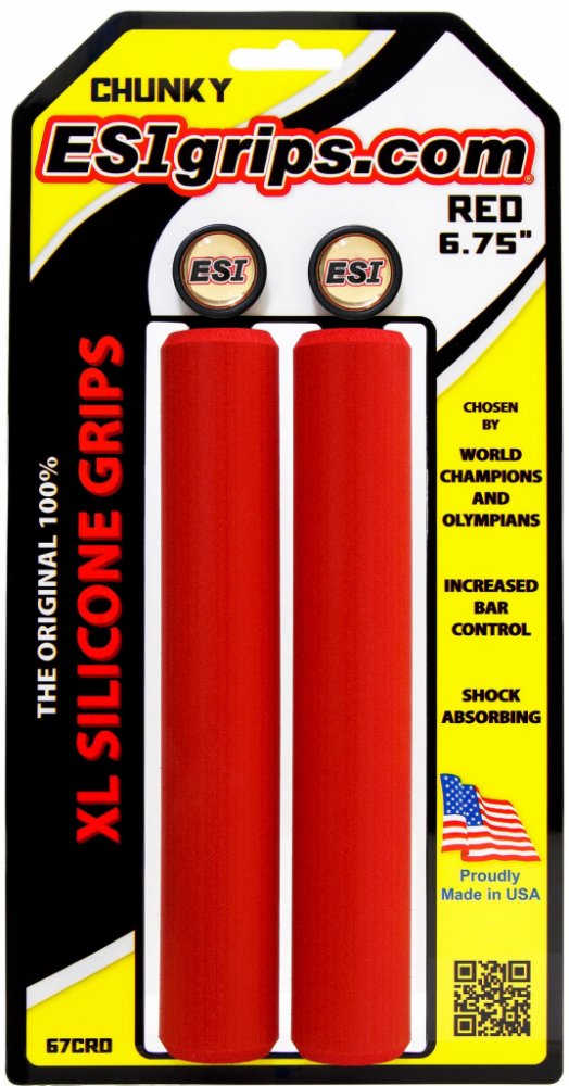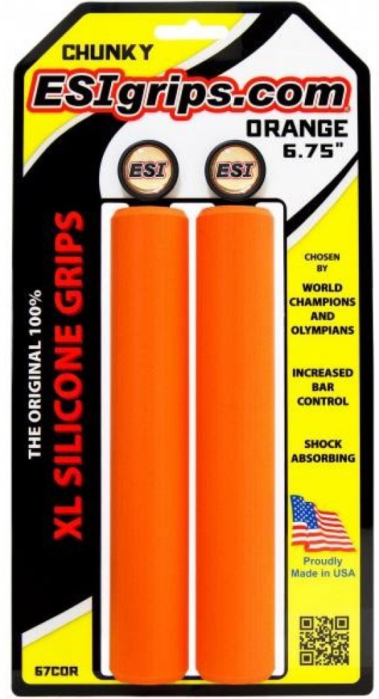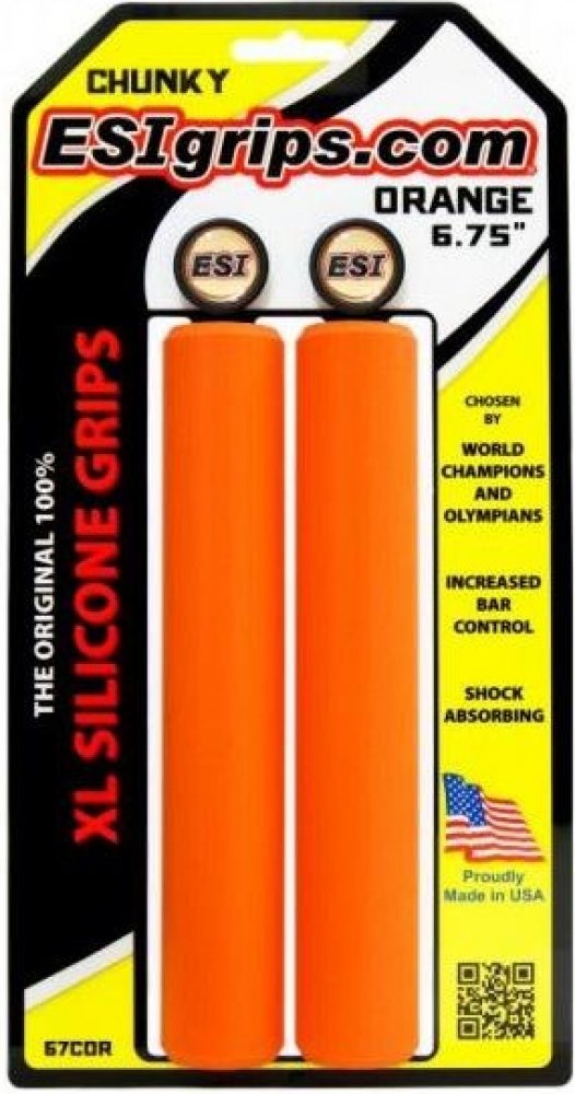 Špičkové 100% silikonové gripy ESIgrips Chunky ve verzi XL - prodloužené na 6,75" / 17 cm. ESIgrips vám padnou do ruky a velmi dobře tlumí otřesy. Zaručují stejný úchop za sucha i za mokra. Neklouže, ale nelepí. znecitlivění rukou únavu paží. Odolné vůči UV záření, nemění barvu ani tvar.Výborně sedí na řídítkách bez možnosti protáčení.Vynikající v náročných podmínkách i za jakéhokoliv počasí.Jednoduchá údržbaDélka: 17 cmPrůměr: 32 mmBarva: černá