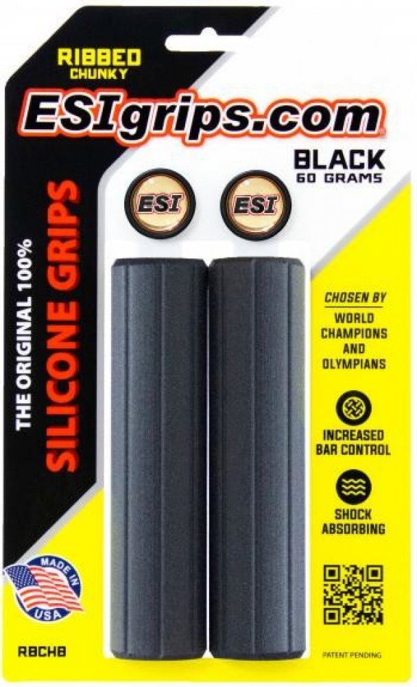 ESI grips Ribbed Chunky jsou nové žebrované gripy z dílny amerických ESI. Dobře padnou do ruky a výborně tlumí otřesy. Zaručují stejný úchop za sucha i za mokra. Snižují znecitlivění rukou a únavu paží. Jsou určeny pro jakékoliv ježdění. | ESI grips Ribbed Chunky jsou nové žebrované gripy z dílny amerických ESI. Dobře padnou do ruky a výborně tlumí otřesy. Zaručují stejný úchop za sucha i za mokra. Snižují znecitlivění rukou a únavu paží. Jsou určeny pro jakékoliv ježdění. Klíčové vlastnosti Ribbed Chunky:Podélné žebrování pro lepší přilnavost a tlumení nárazů.Odolné vůči UV záření, nemění barvu ani tvar.Vynikající v náročných podmínkách i za jakéhokoliv počasí.Výborně sedí na řídítkách bez možnosti protáčení.Nízká váha - pouze 60 g.Tloušťka - 32 mm100% silikon.Snadná údržba.