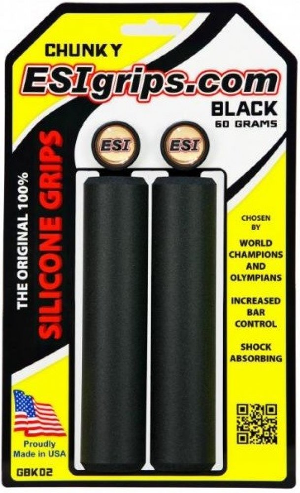 ESI grips skvěle padnou do ruky a velmi dobře tlumí otřesy. Zaručují stejný úchop za sucha i za mokra. Nekloužou, ale zároveň nelepí. Snižují znecitlivění rukou a únavu paží. Nejoblíbenější varianta Chunky má průměr 32 mm a hmotnost 60 gramů.
