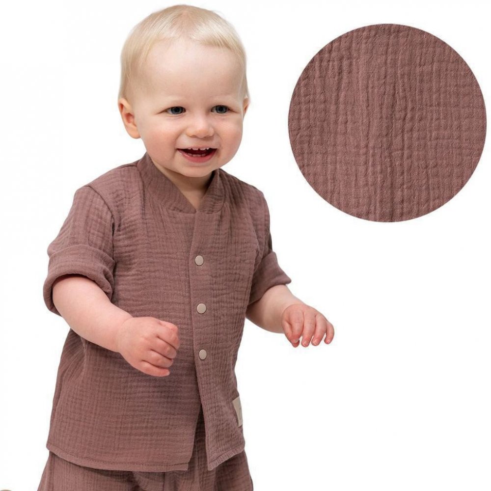 Dětská mušelínová košile Luca Brown Esito. Naše mušelínová košile Luca Brown je pohlazením pro pokožku vašeho dítěte a úleva pro vás. V horkých letních dnech, kdy se běžné oblečení lepí na tělo a způsobuje nepohodlí, naše mušelínová košile vytváří pocit lehkosti a vzdušnosti.Proč se rodiče i děti zamilovávají do naší mušelínové košile Luca Brown ? - Prodloužená záda a volný střih perfektně padne.-...