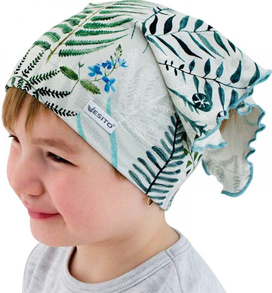 ESITO Dívčí šátek Kapradí vel. 32 Moderní snadno udržovatelný materiál dětského šátku na hlavu. Velmi příjemný materiál na nošení, pohodlné navlékání i svlékání. Jednoduchý střih dívčího šátku na hlavu. Tento šátek na hlavu nejen pro kojence má digitální potisk, takže opravdu vydrží. Vlastnosti: - vzor potisku Kapradí - použití: jaro, léto, podzim - určení: pro holky od cca 3 měsíců do cca 5 let viz. velikosti - materiál: 95% bavlna, 5% elastan - atestované materiály pro malé děti - bez šňůrek na zavazování - praní v pračce při teplotě do 40 °C - vel. 32 - cca 3 až 5 měsíců - obvod hlavy od 32 do 36 cm - vel. 36 - cca 5 měsíců až 1 rok - obvod hlavy od 36 do 40 cm - vel. 40 - cca 5 měsíců až 1 rok - obvod hlavy od 40 do 44 cm - vel. 44 - cca 1 rok a více - obvod hlavy od 44 do cca 50 cm - velikost udává obvod hlavičky v cm Kvalitní český výrobek! Vyrobeno s láskou k dětem v podhůří Orlických hor.