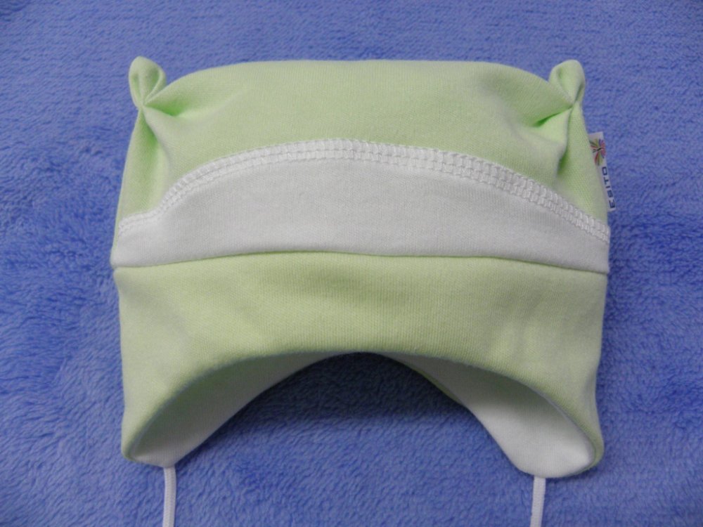 Kojenecká bavlněná čepička s růžky je lehčí čepička vhodná zejména do jarních a podzimních dní, lze ji však využít i během chladnějších letních dní. Použití: na zavazování pomocí šňůrkami - velmi dobře drží na hlavičce Materiál: 100% bavlněný úplet Jersey Velikosti: - XS pro věk 0-2 měsíce - S pro věk 3-5 měsíců