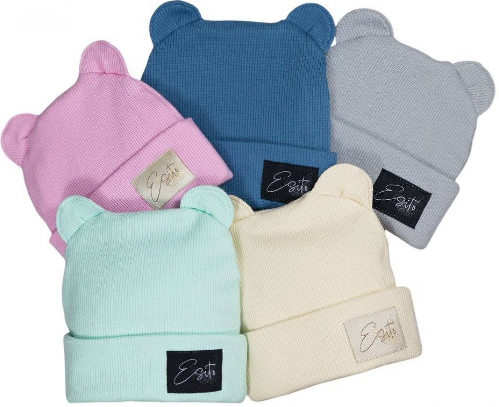 ESITO zimní žebrovaná čepice s oušky Color smetanová