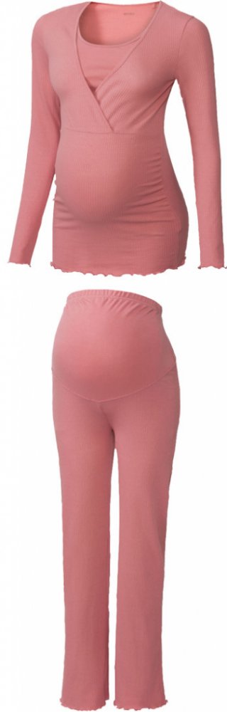 esmara Dámské těhotenské pyžamo Příjemné na nošení díky vysokému podílu bavlny Měkký, vroubkovaný materiál Triko s širokým výstřihem do V a praktickou funkcí pro kojení Delší střih vpředu Přikrývající břicho Postranní nabírání pro větší volnost při pohybu Módní volánkový okraj na rukávech, lemu a koncích nohavic Extra vysoký střih kalhot s měkkým elastickým pasem Skvěle sedí díky elastanu LYCRA®...